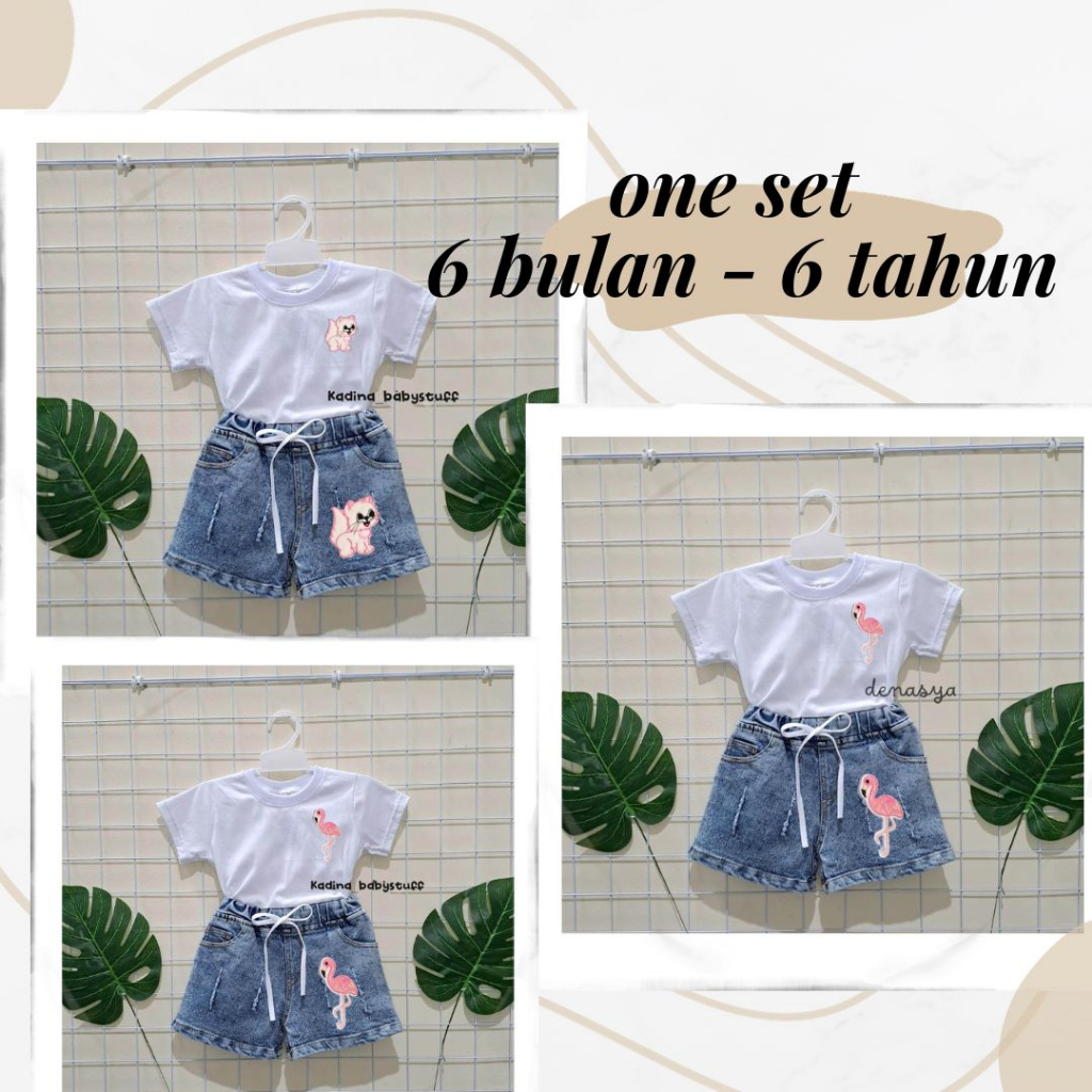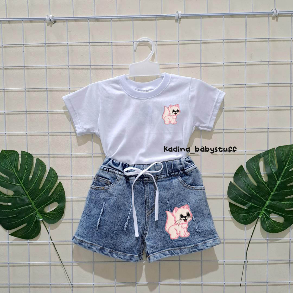 (KEKINIAN) SETELAN HOTPANTS JEANS ANAK PEREMPUAN MOTIF BORDIR USIA 1-6 TAHUN
