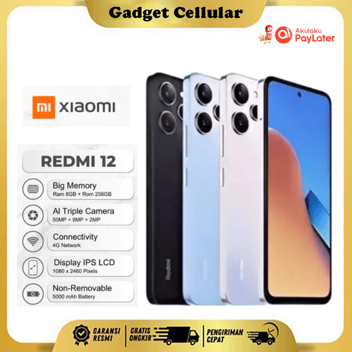 Xiaomi Redmi 12 Ram 8/256gb Black Terbaru Tanpa Dp - Official Store - Smartphone Android Murah 1jt