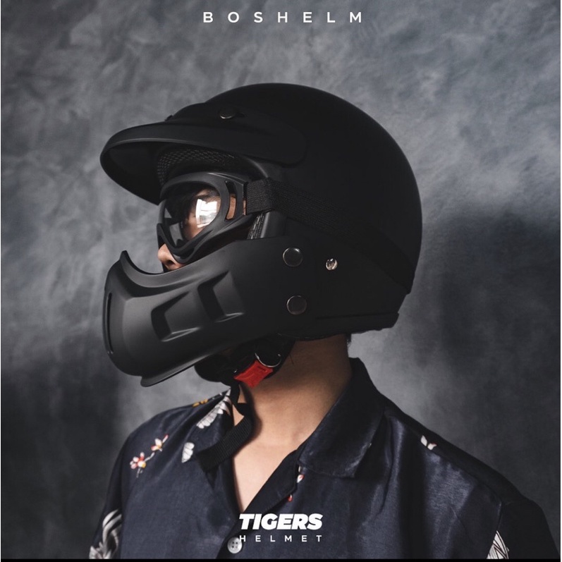 BOSHELM HELM CAKIL MODULAR TIGERS HITAM DOFF HELM FULL FACE SNI