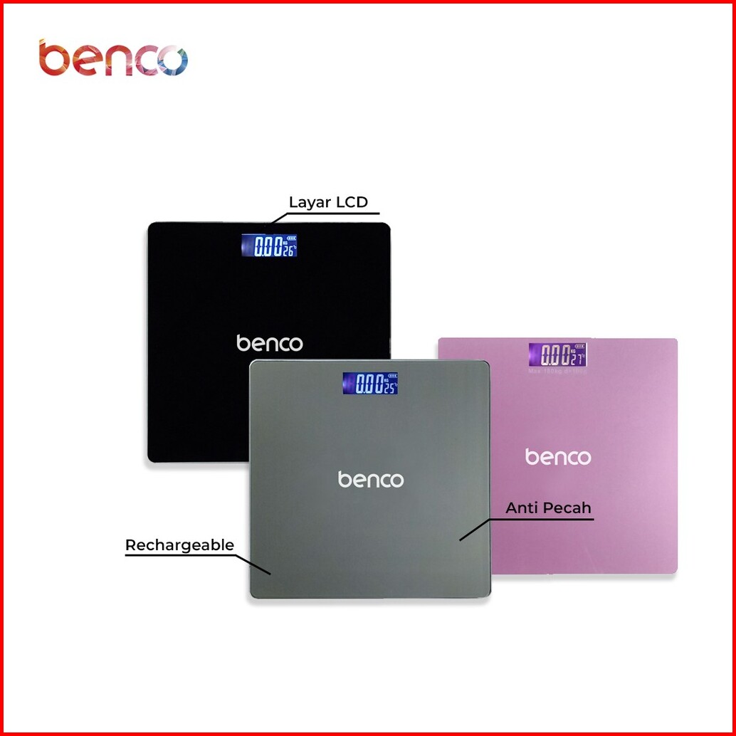 Benco Timbangan Badan Digital With Usb Charging Anti Pecah Weight Body With Lcd Murah