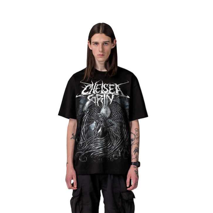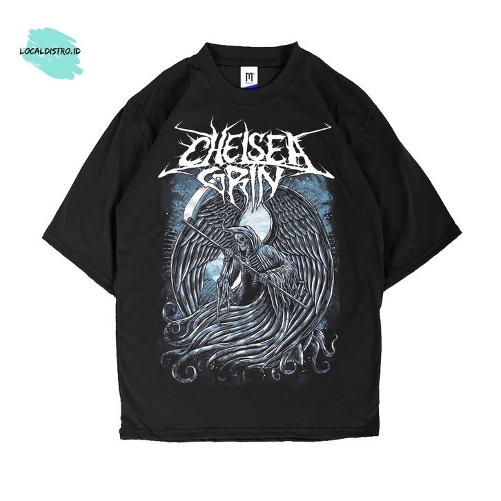 KAOS PRIA BAJU METAL CHELSEA GRIN BLUE TENGKORAK SAYAP BAJU MUSIK ROCK METAL KASUAL TAG MERCHONS
