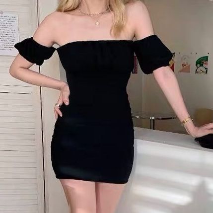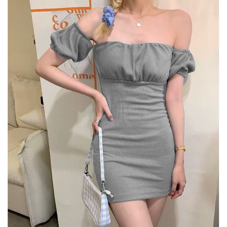 Gratis Ongkir Korean Off Shoulder Short Puff Sleeve Pleated Mini Dress 1759 Baju Pesta, Dres Party, Gaun Vintage Ootd