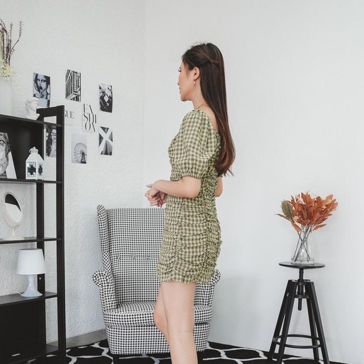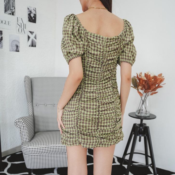 Gratis Ongkir 【CLEARANCE】Korean Tartan Ruffle Dress 2194 (S/M/L/XL) Baju Pesta, Dres Party, Gaun Vintage Ootd Korean Kek