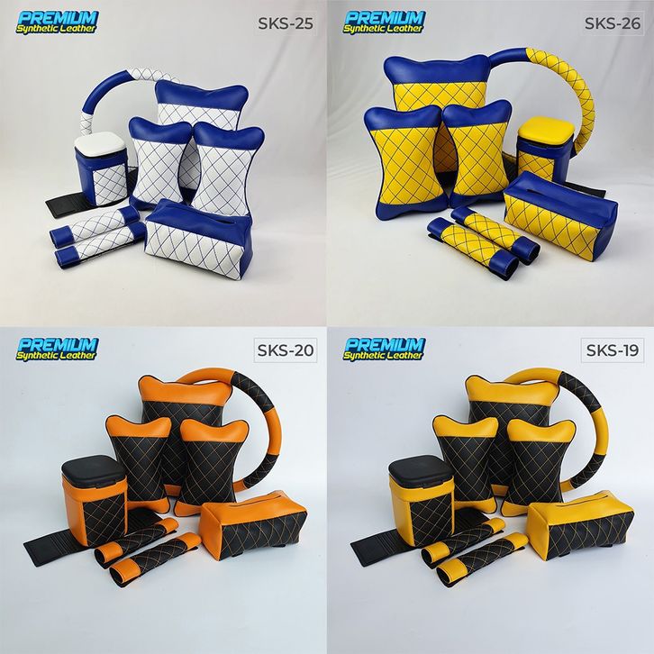 Set Bantal Mobil 5 in 1 plus Sarung Stir Mobil / Bantal Headrest Mobil