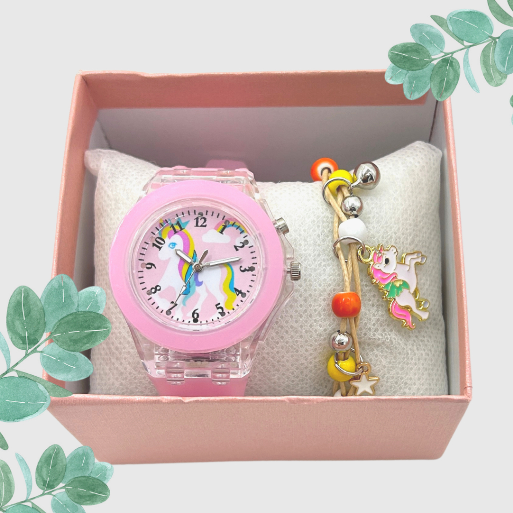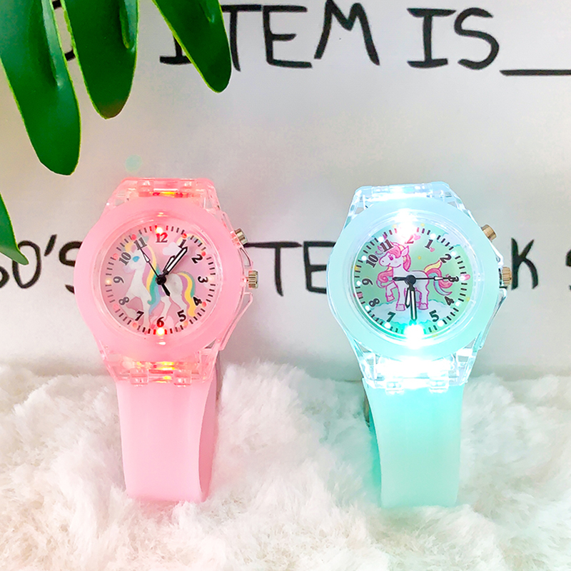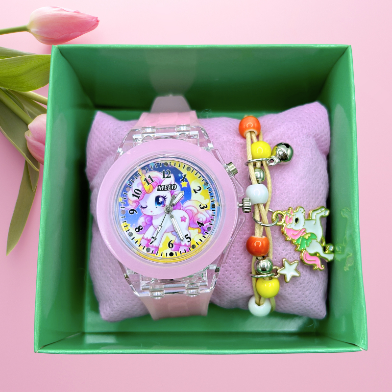 【SET KADO】 JAM ANAK TK PEREMPUAN JAM TANGAN ANAK UNICORN FASHION BARU WARNA LED BERCAHAYA JAM TANGAN