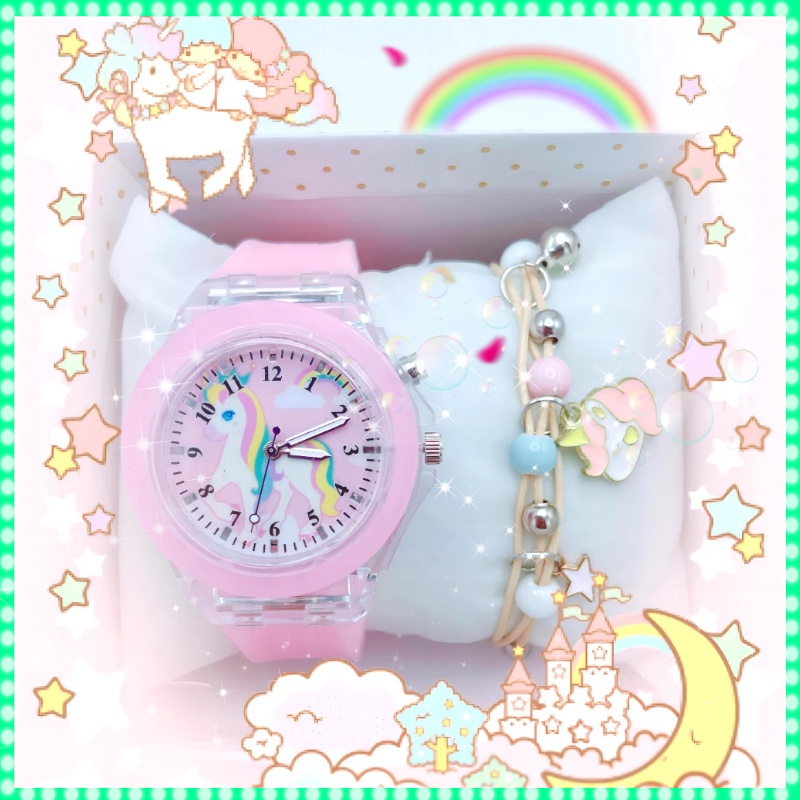 【SET KADO】 JAM ANAK TK PEREMPUAN JAM TANGAN ANAK FASHION BARU WARNA LED BERCAHAYA JAM TANGAN
