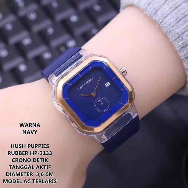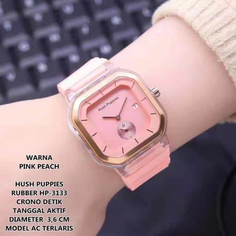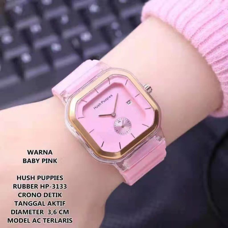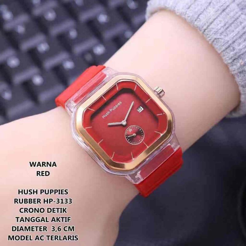 JAM TANGAN WANITA HUSHPUPPIES ANALOG KARET KOTAK HP 1988
