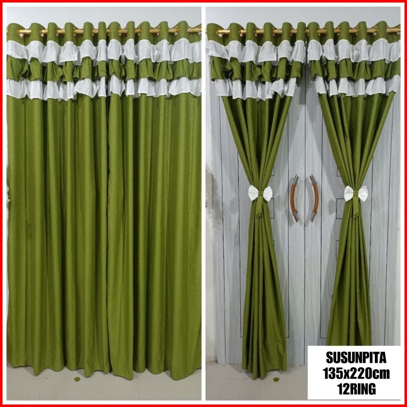 Gorden Pintu Jendela Polos Embos Model Smokring Rumbai Poni Motif Murah Tirai Gordeng Hordeng