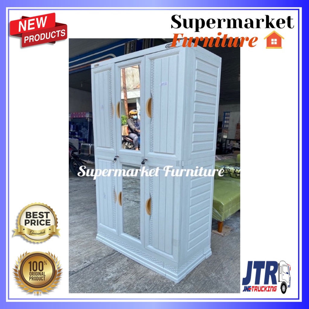 LEMARI PLASTIK NAPOLLY JUMBO 3 PINTU 2 PINTU MODERN MINIMALIS GANTUNGAN + KACA - LEMARI PAKAIAN NAPOLLY 4 SUSUN