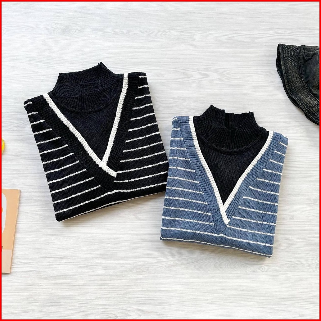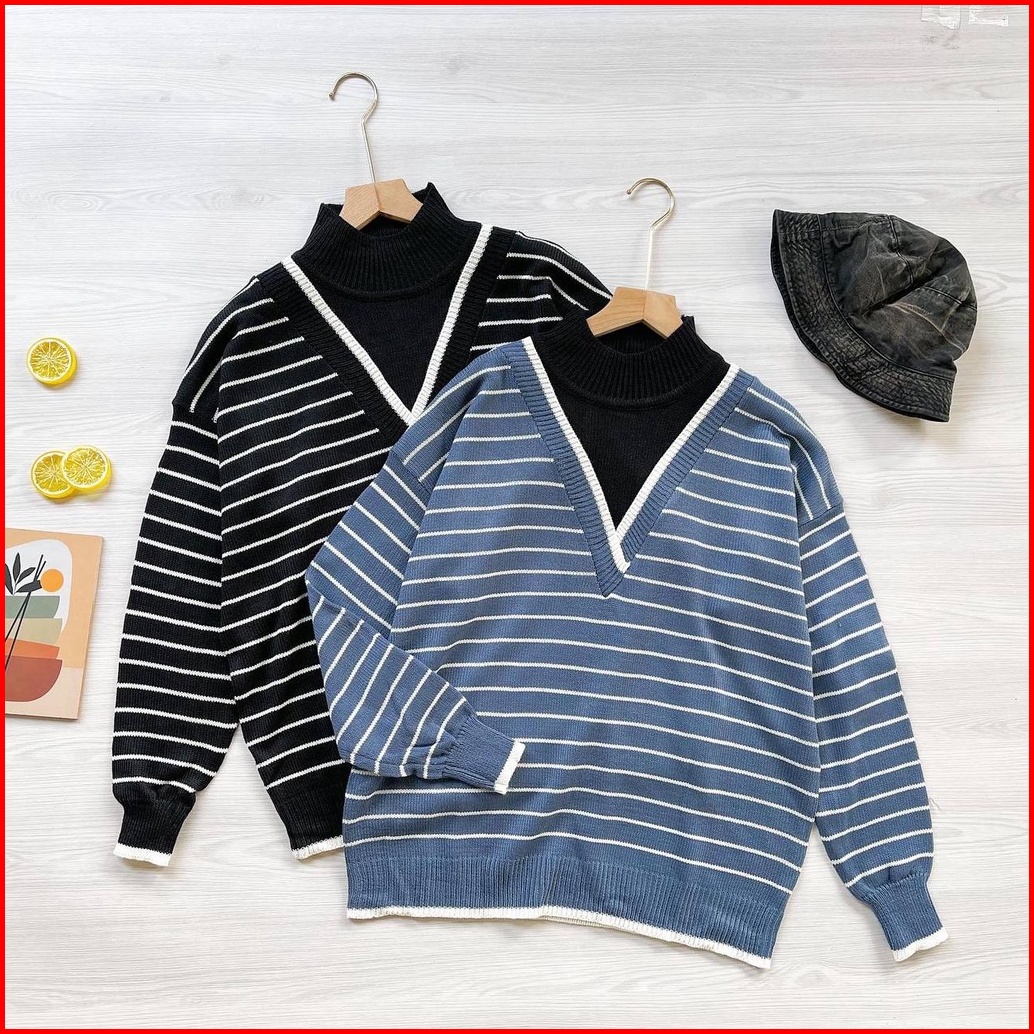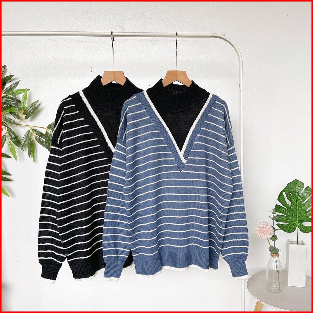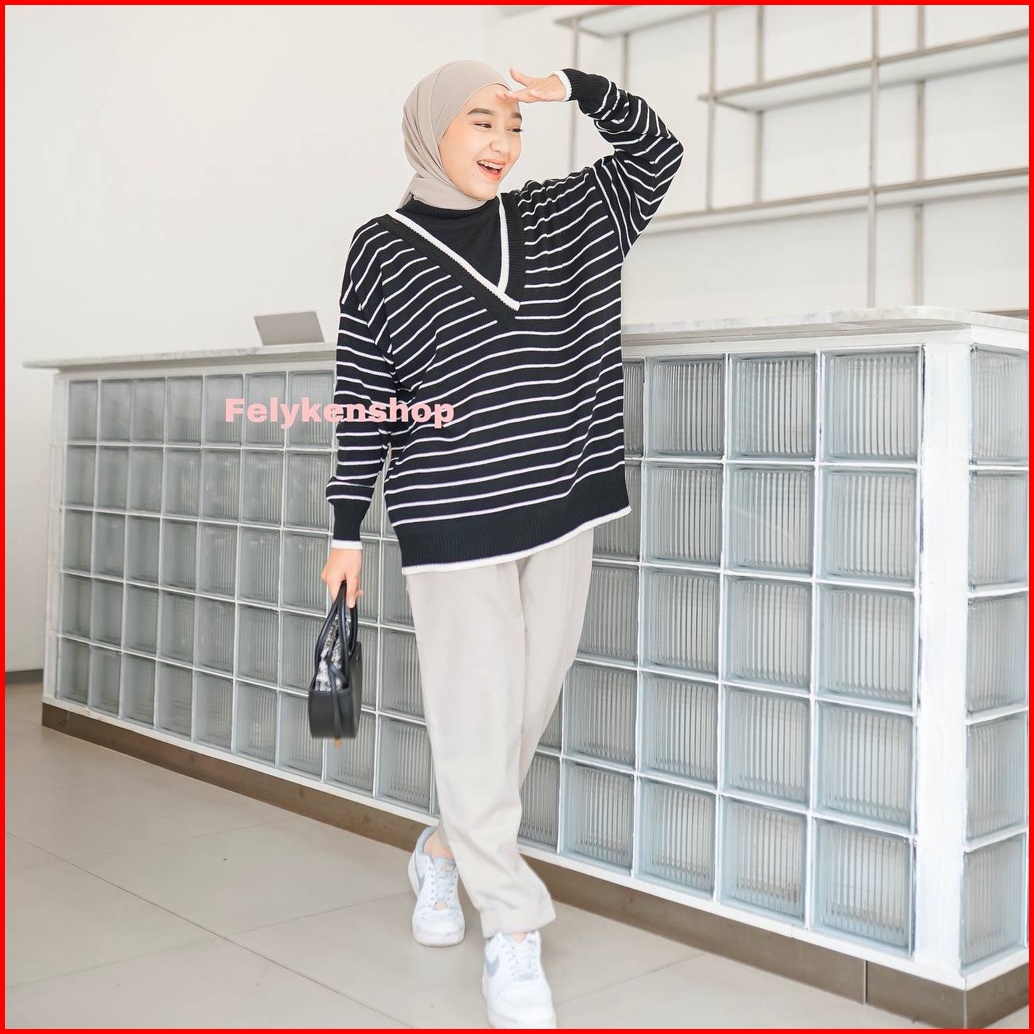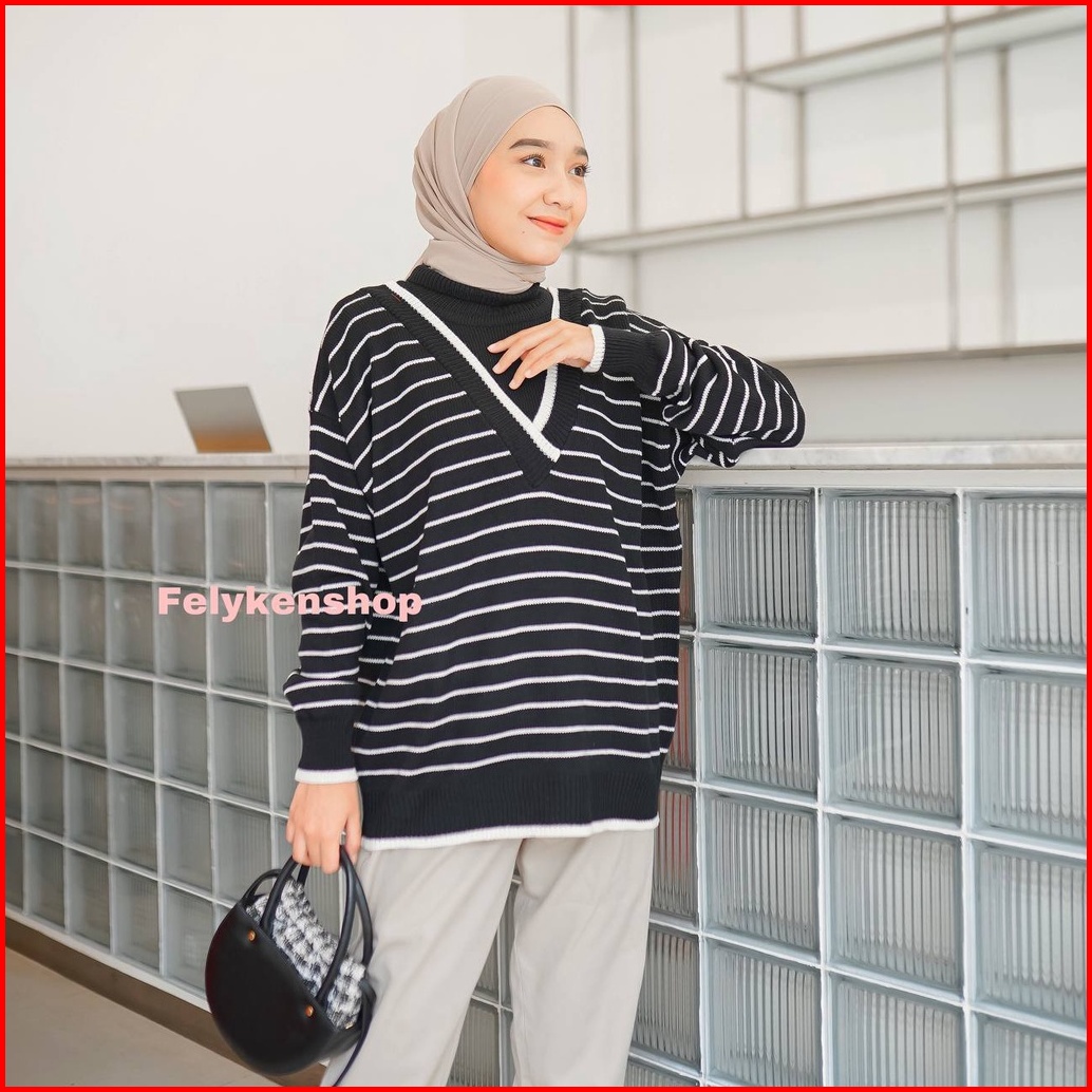 Vika Stripe Sweater Knit Fk Rajut Premium Atasan Wanita
