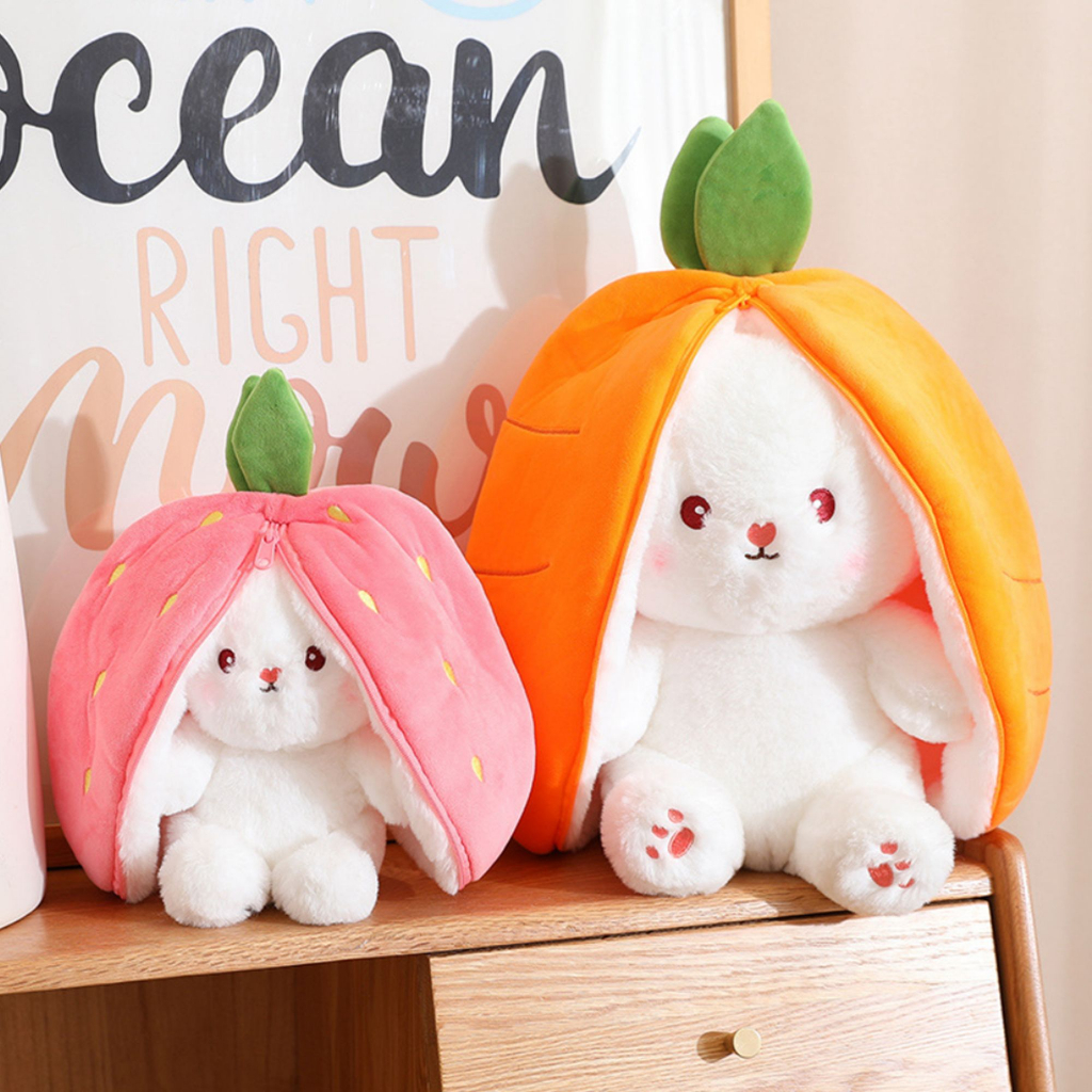 MAINAN MEWAH KELINCI BONEKA KELINCI LEMBUT BERUBAH MENJADI WORTEL STROBERI