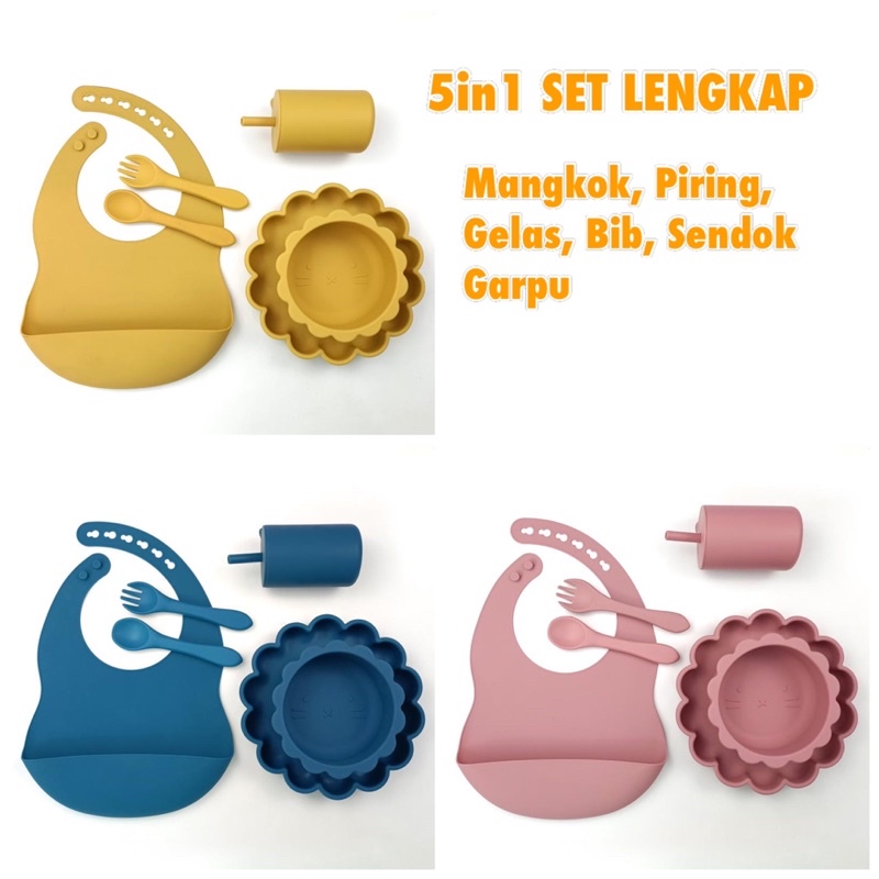 PIRING SILLIKON BAYI SUCTION SET BIB DAN PIRING ,SENDOK(BPAFREE PIRING BAYI SET SILIKON ANTI TUMPAH