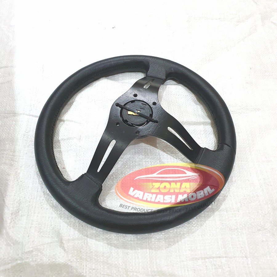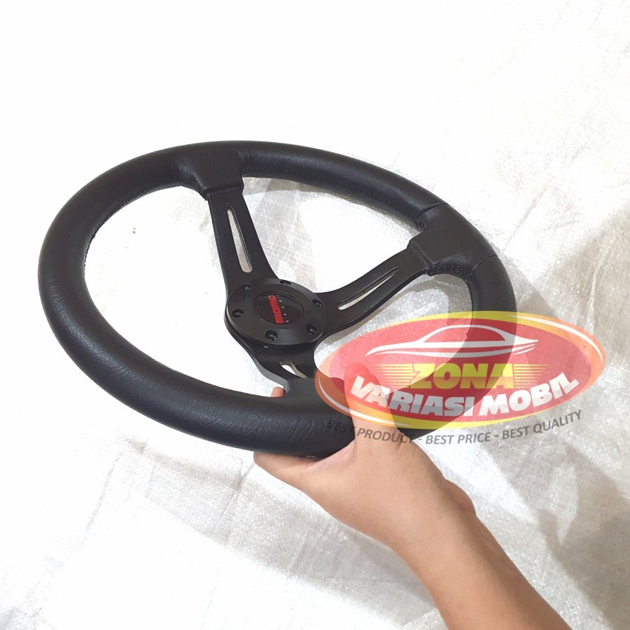 SETIR / STEER / STIR RACING CELONG MOBIL UNIVERSAL MOMO HITAM FULL BLACK 14 INCH