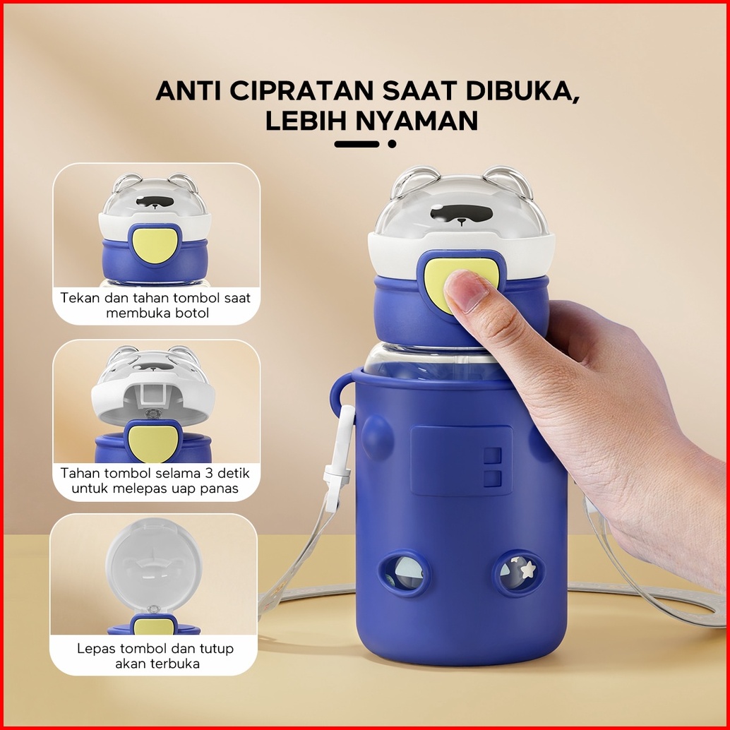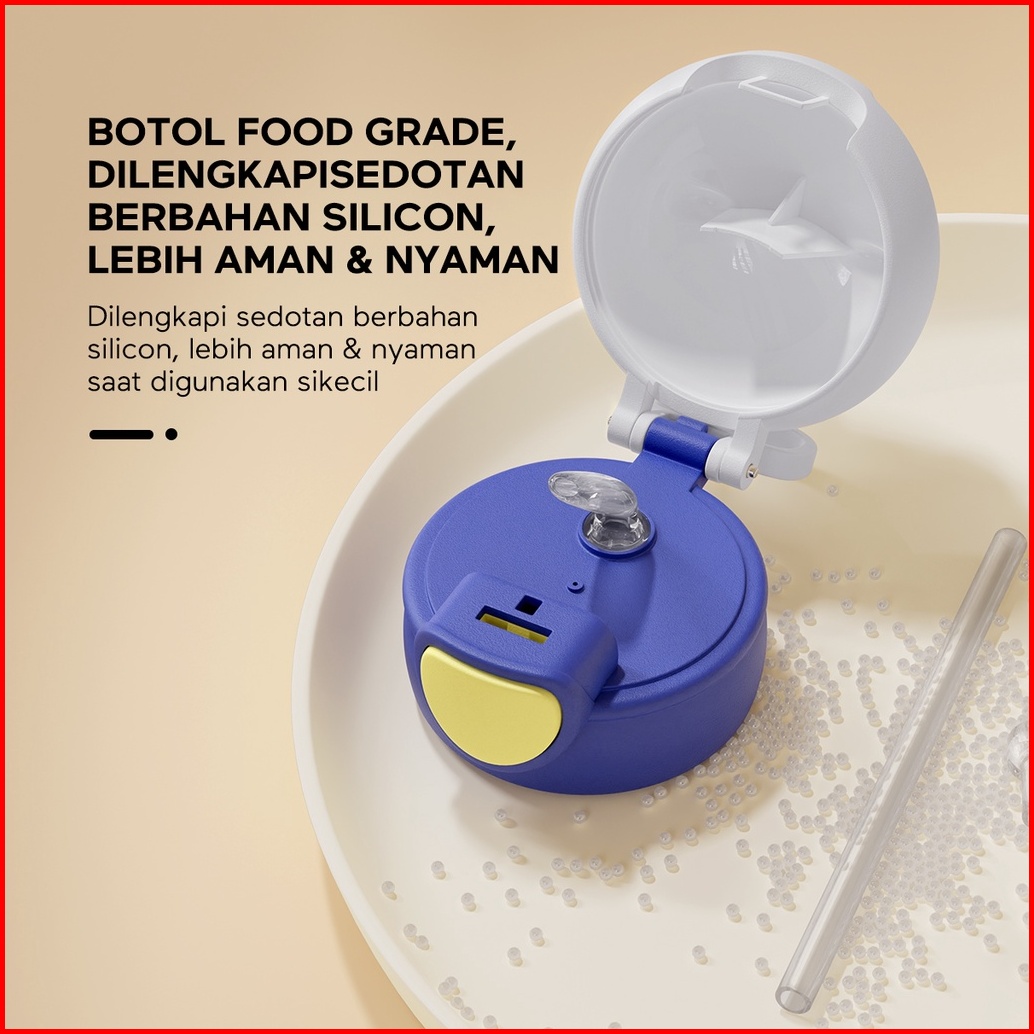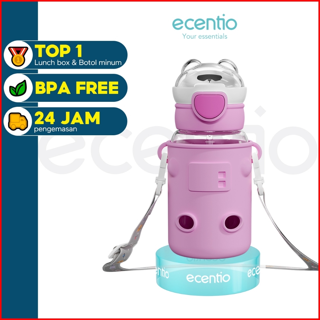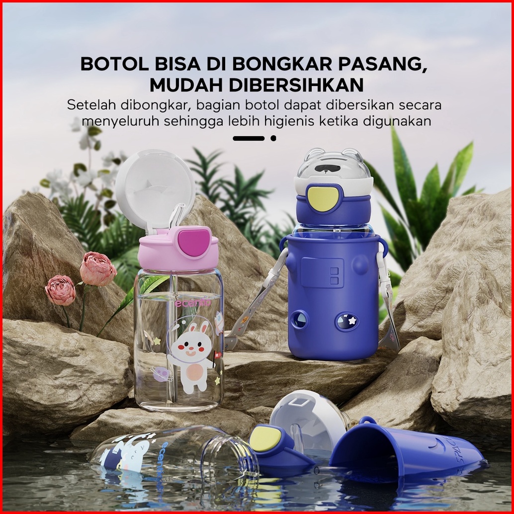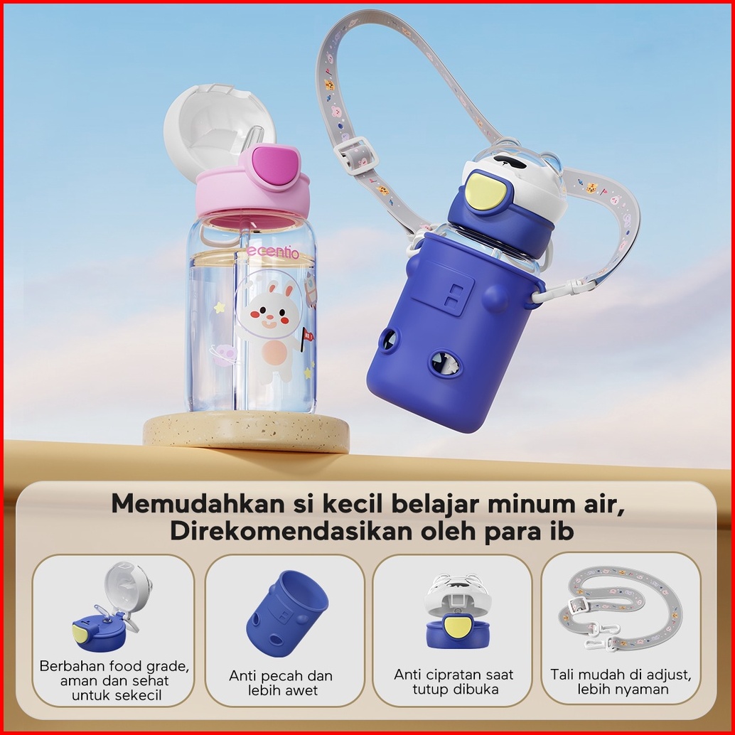 Ecentio Botol Minum Anak 600ml Sedotan Tempat Minum Anak Tas Silikon Portable Anti Bocor Dengan Desain Cartoon