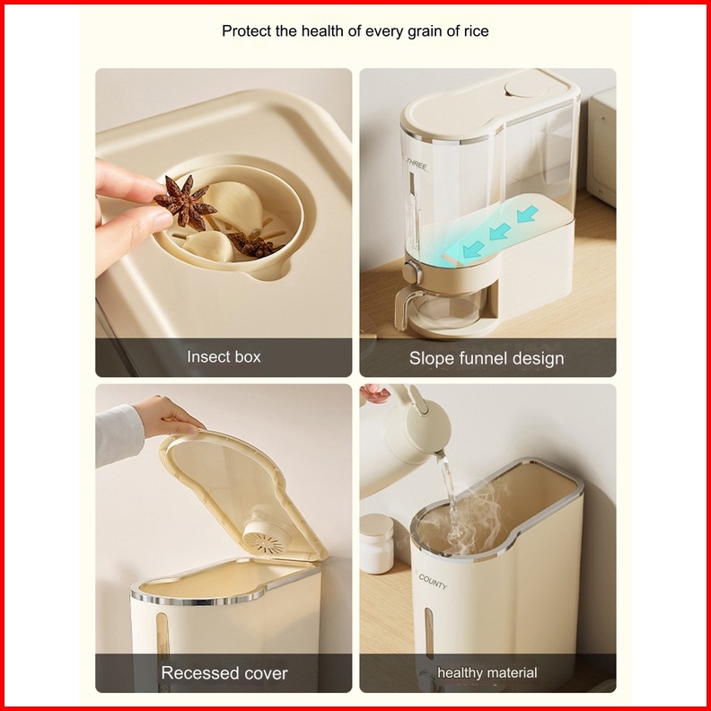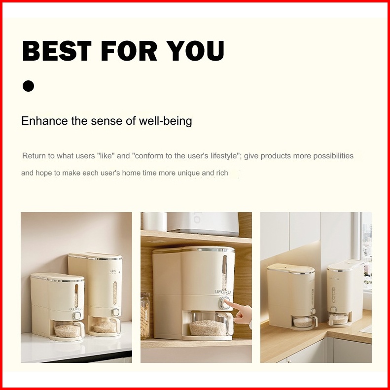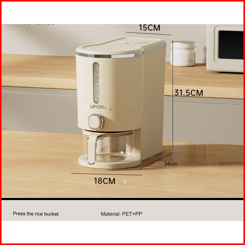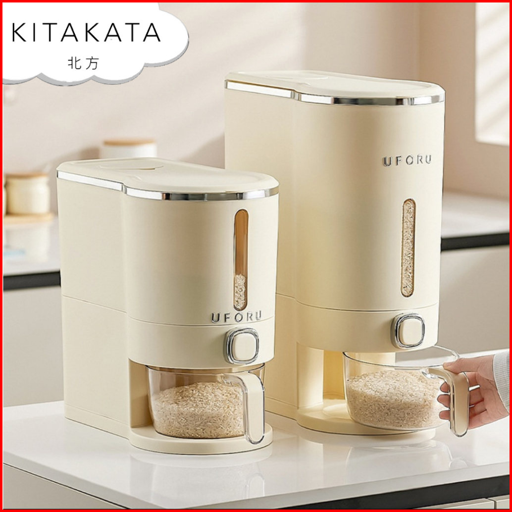 Kitakata Komebitsu Uforu Dispenser Beras 5 Kg Dan 10 Kg Food Grade Seal Rice Bucket Anti Kutu Tempat Wadah Penyimpanan B