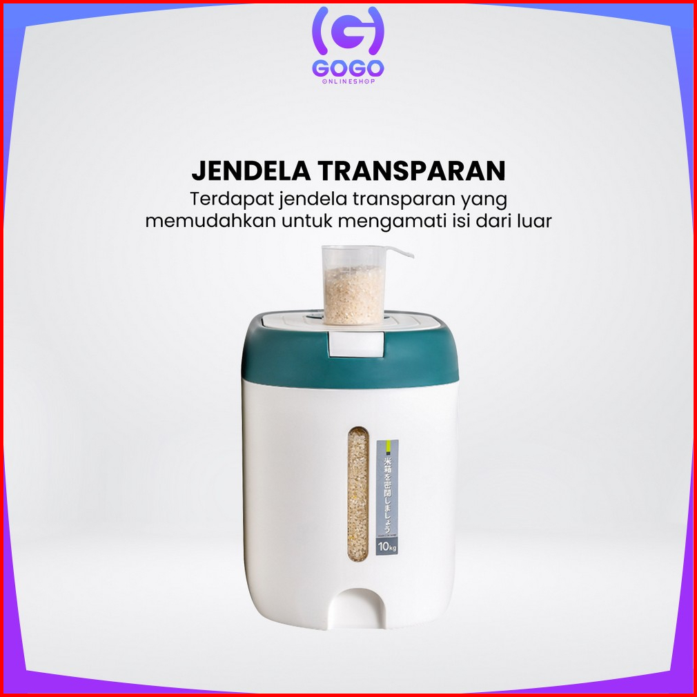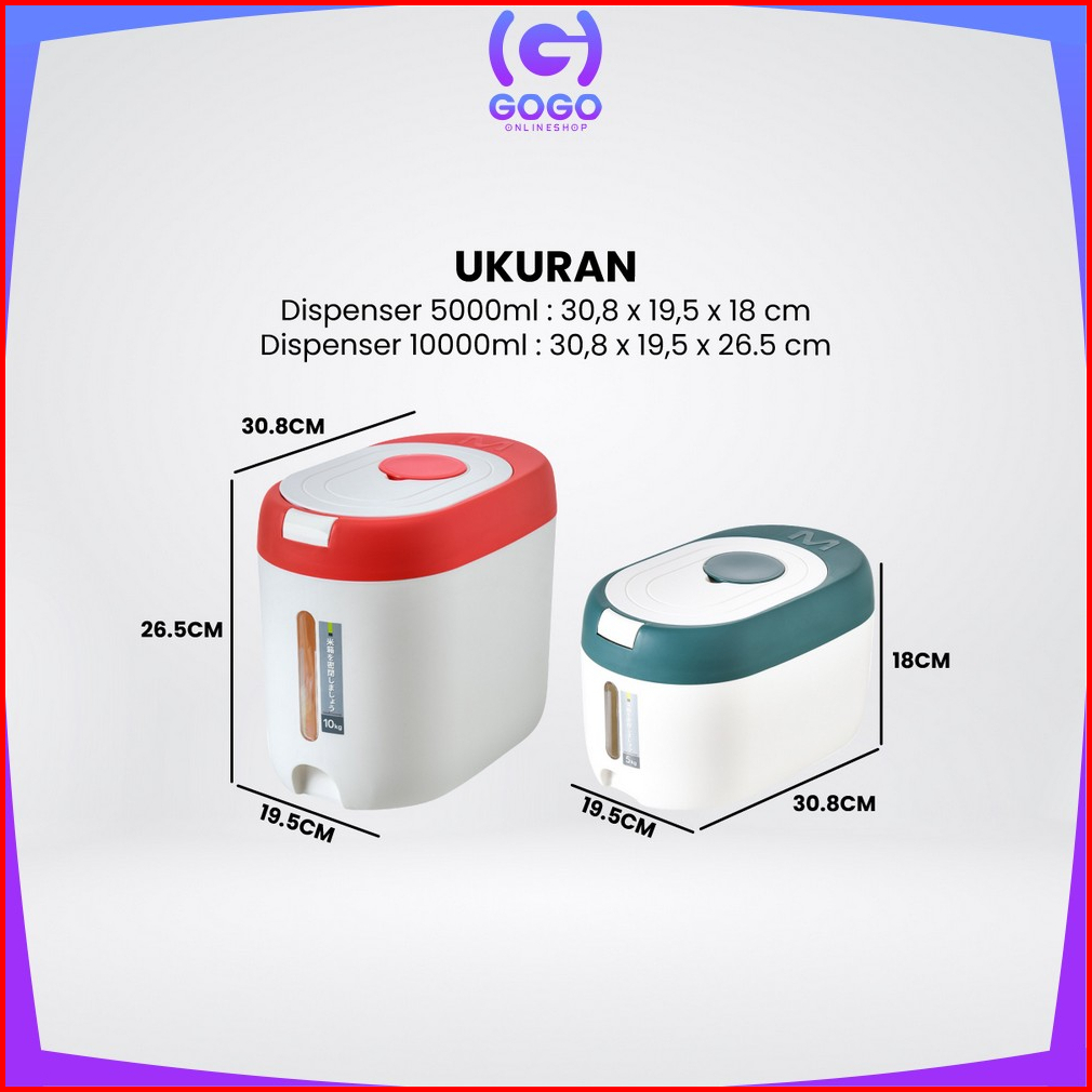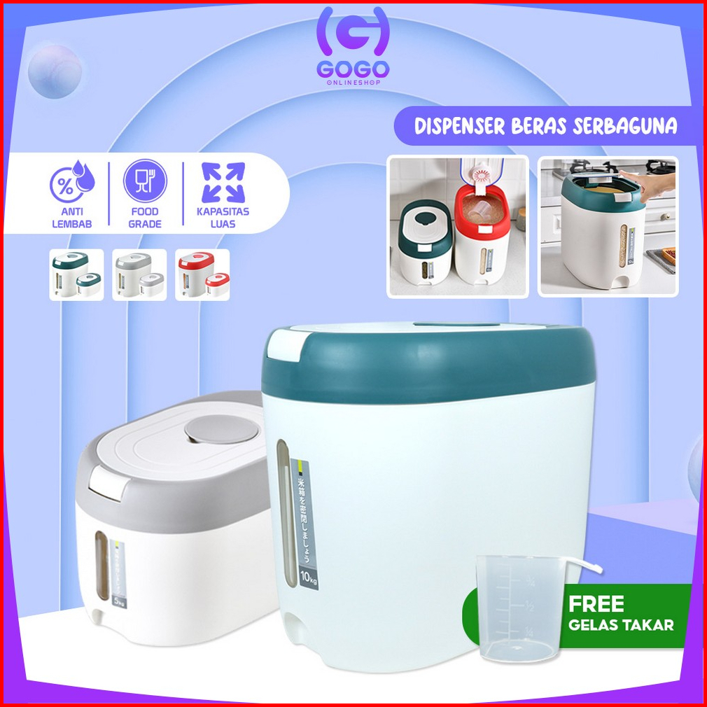 Gogo-c882 Dispenser Beras 5kg 10kg Free Gelas Takar Tempat Wadah Penyimpanan Beras Rice Bucket Anti Kutu Rice Dispenser