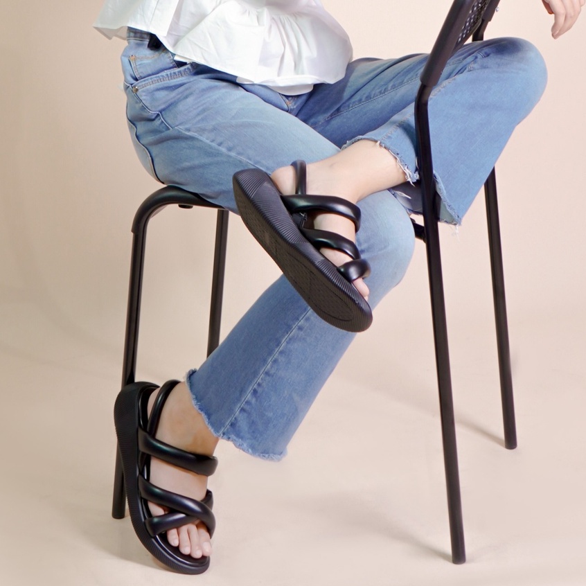 SEPATU SANDAL WANITA WEDGES VIVIAN MODEL SILANG DUA TALI STRAP BELAKANG HAK TINGGI SOLE 3 CM