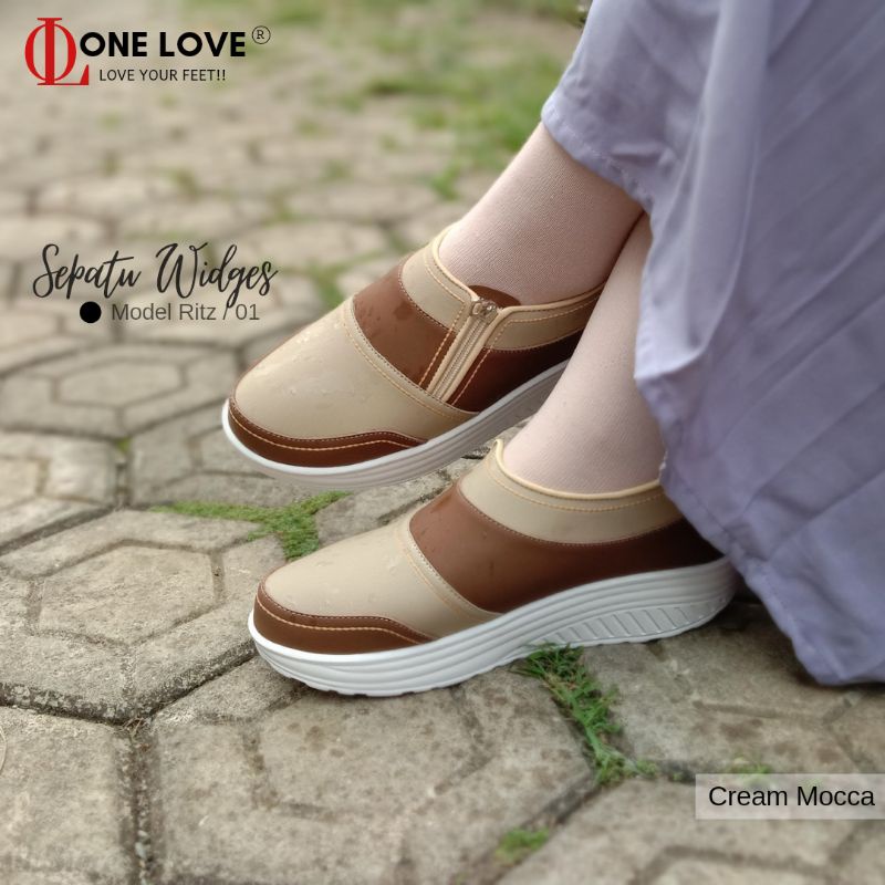 ONE LOVE DEENA SEPATU WEDGES WANITA TNGGI HAK 4 CM BAHAN KULIT SINTETIS PREMIUM