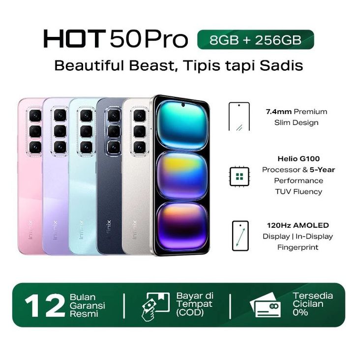 [Mall] Infinix Hot 50 Pro 8/256GB, Garansi Resmi 1 Tahun - Infinix Official Store Resmi