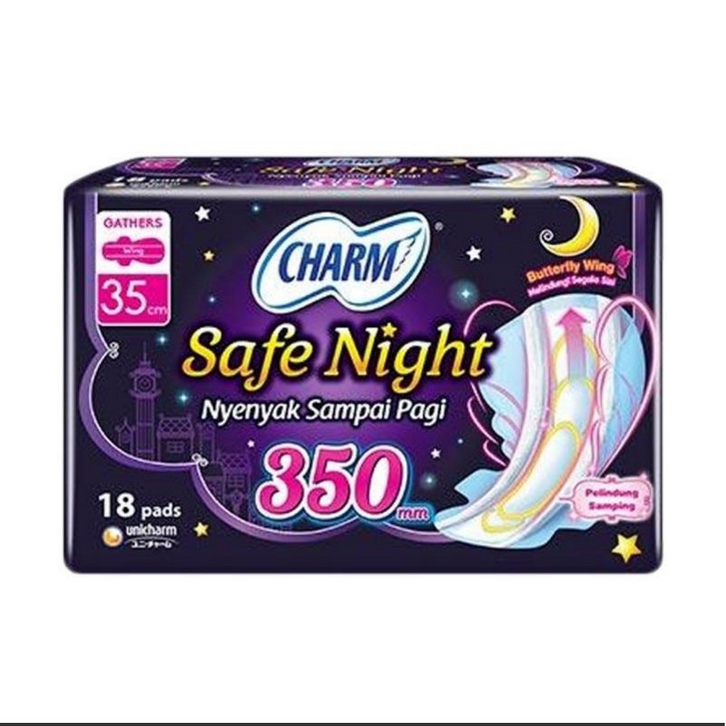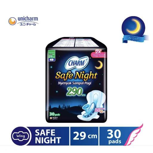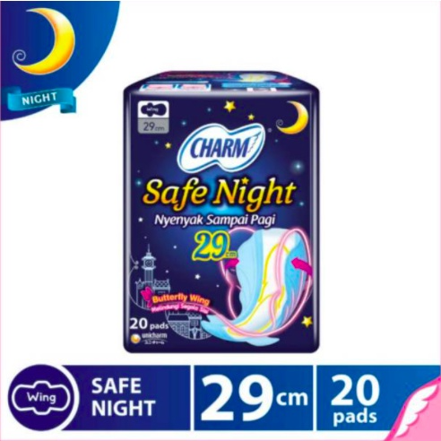 Charm Safe Night Pembalut Malam 29cm 30s 35cm 18s 42cm Wing Wings