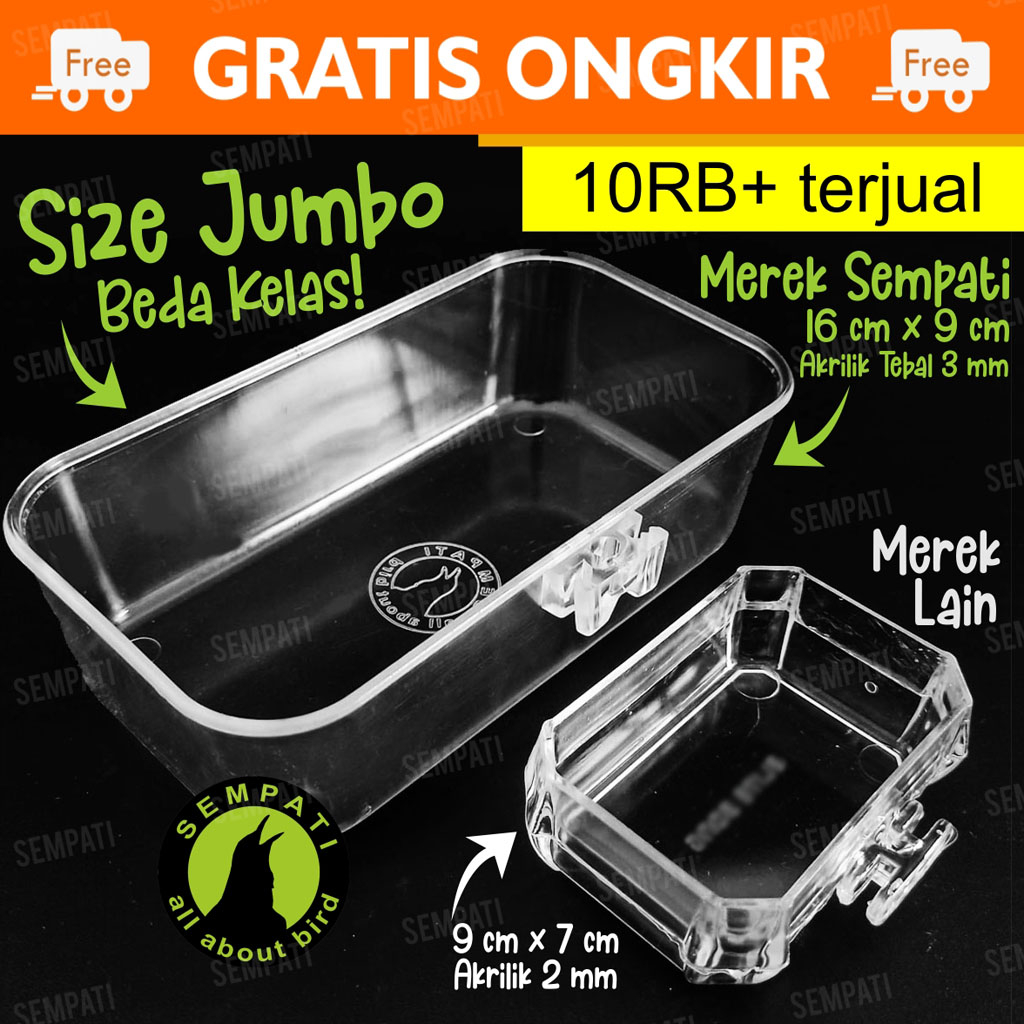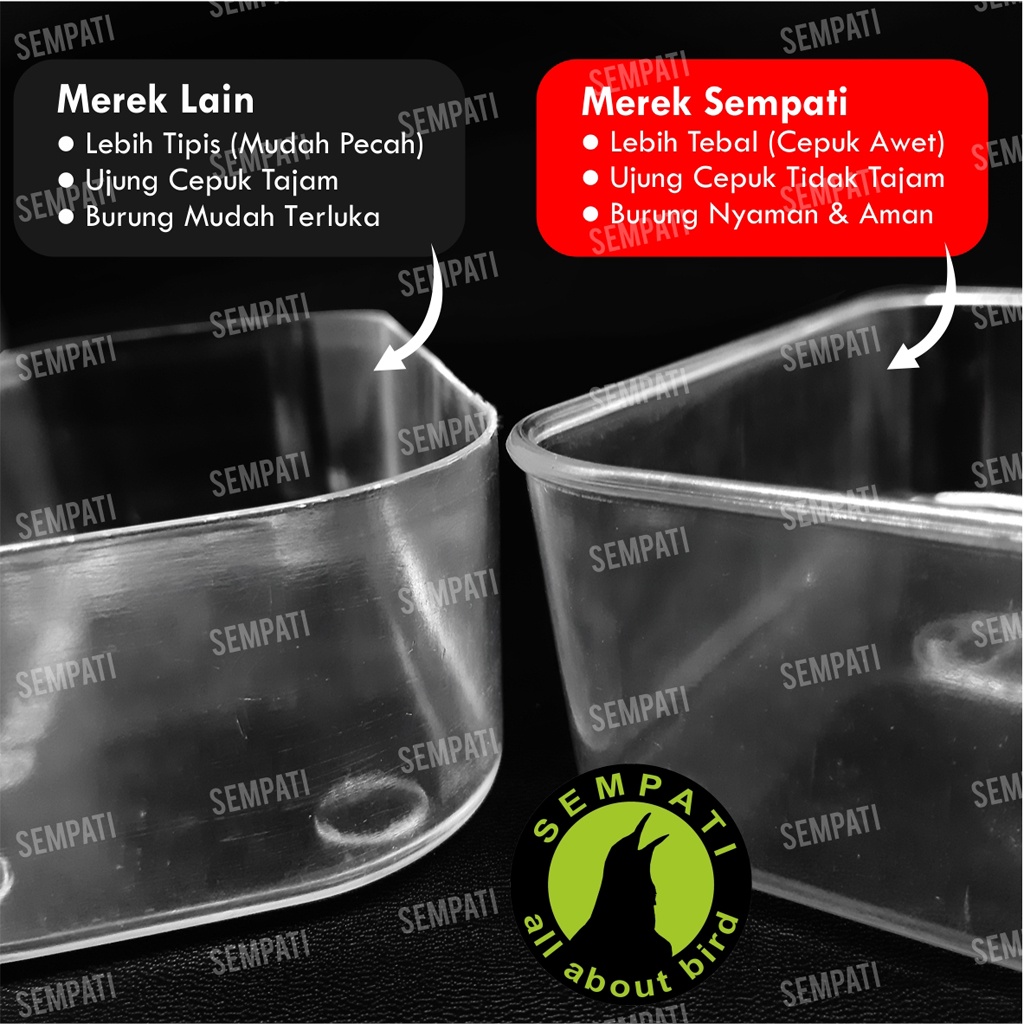 CEPUK MANDI BURUNG KOTAK WADAH MIKA PLASTIK BENING TEBAL UNTUK MURAI LOVEBIRD PLECI SEMPATI CPKOT
