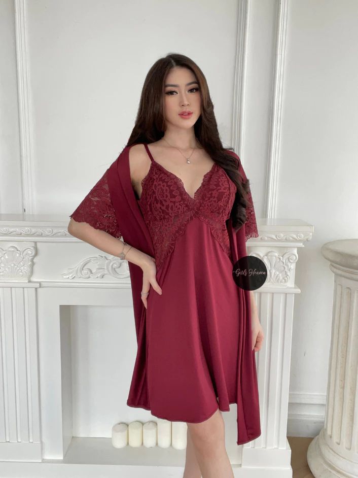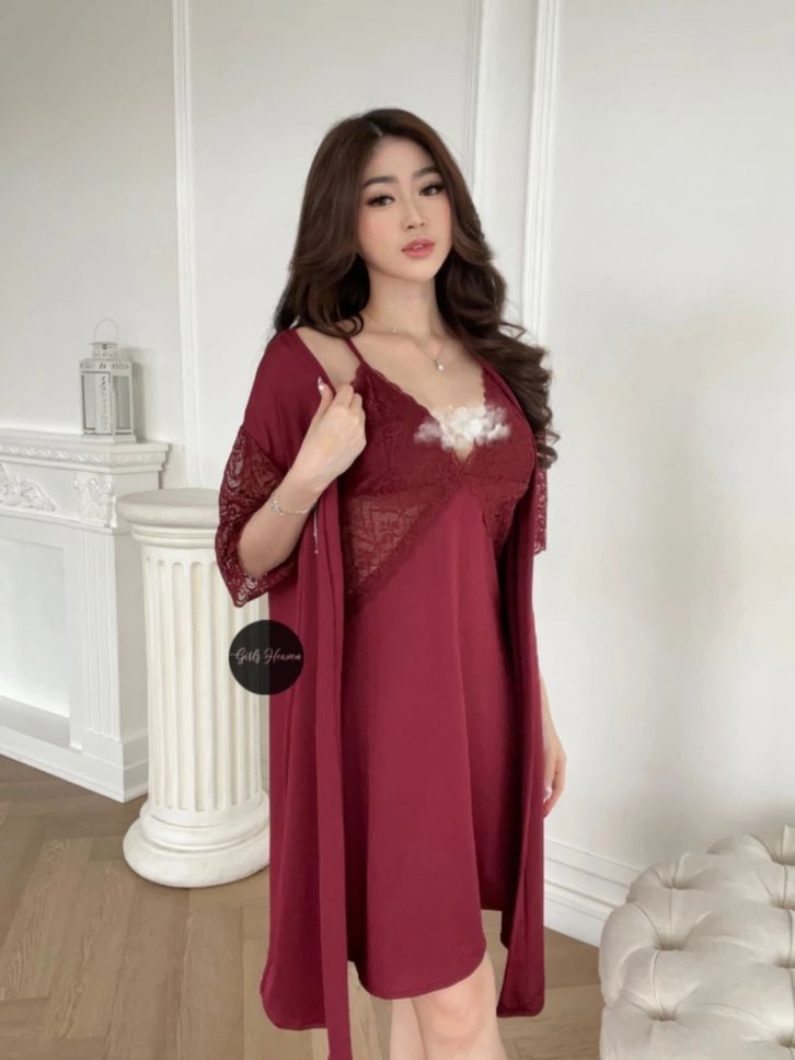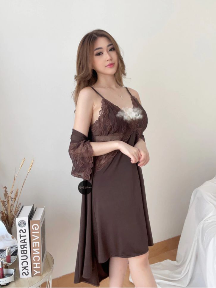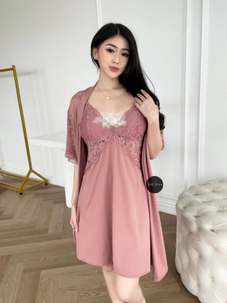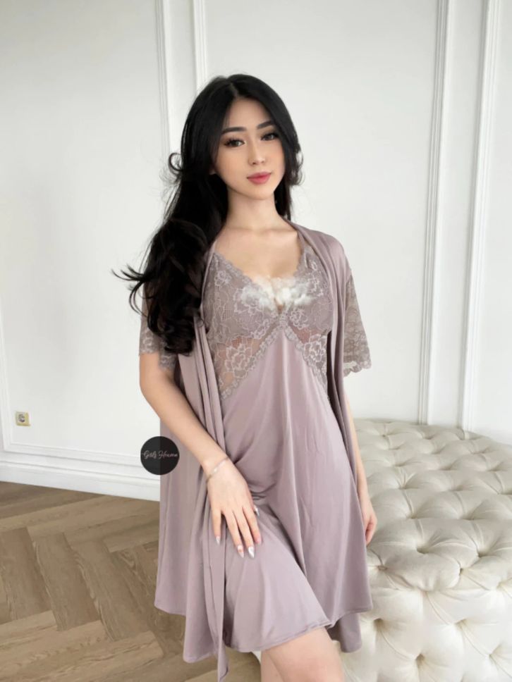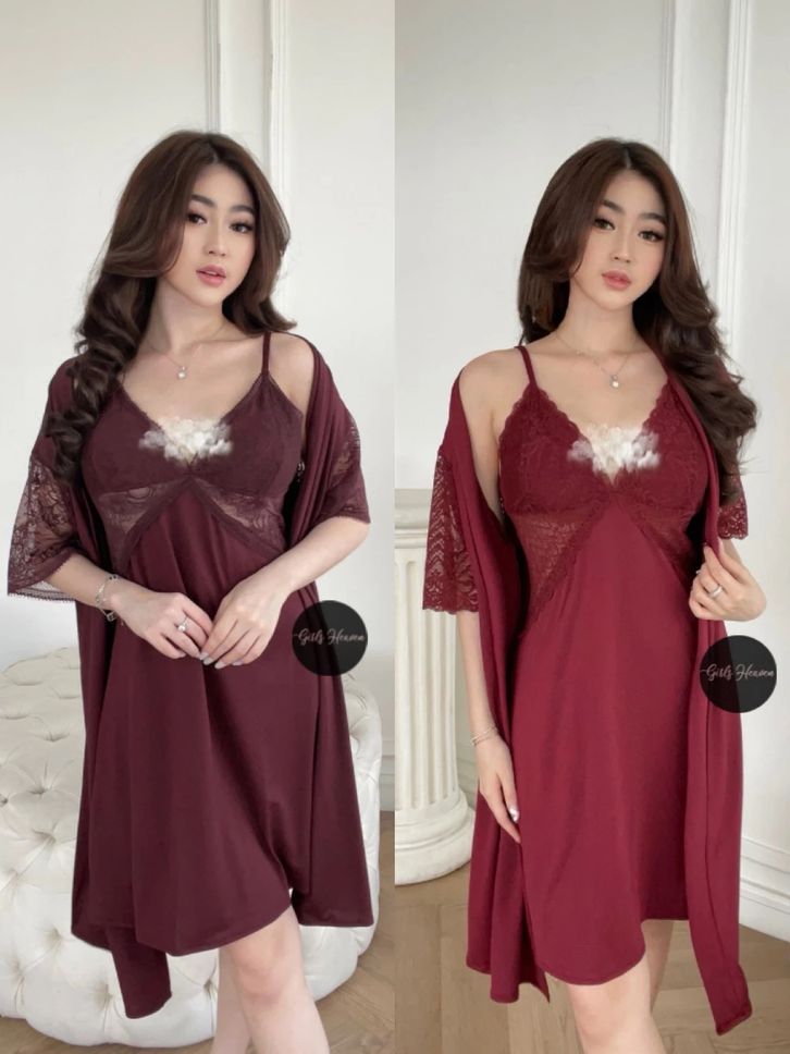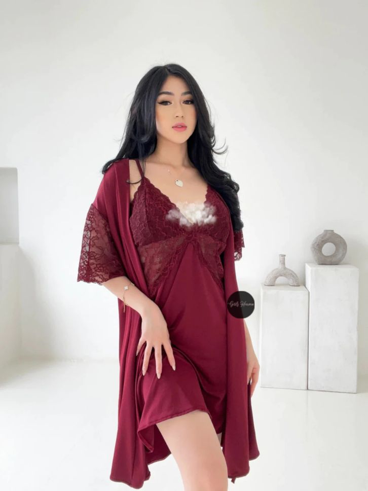 Lingerie Dress Kimono + Belt Baju Tidur Malam Wanita Dewasa Seksi Renda Polos Pendek 070