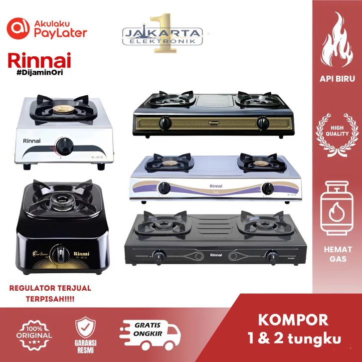 KOMPOR GAS RINNAI 2 TUNGKU RI-2025 STENLIS ORIGINAL | KOMPOR GAS RINNAI TURBO OFFICIAL STORE