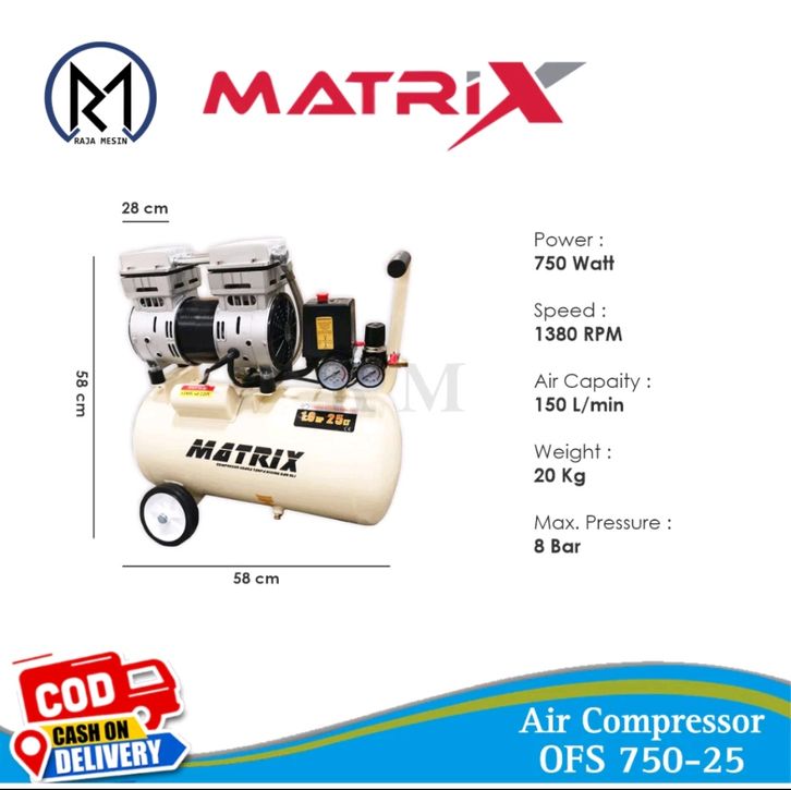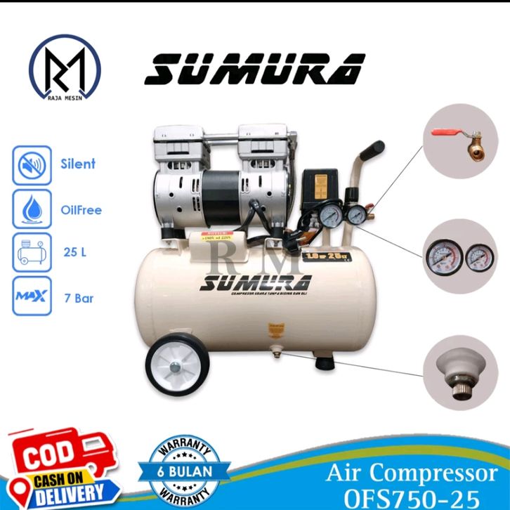 Kompresor Angin Tanpa Oli / Air Compressor Silent OFS 750-25 1.0 HP 25 LITER