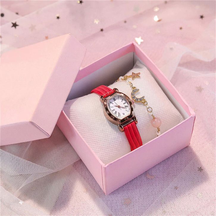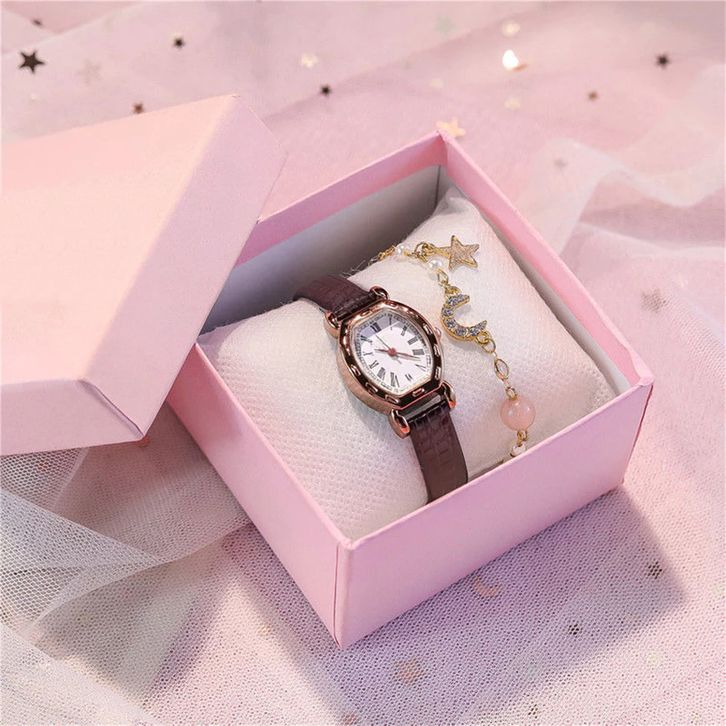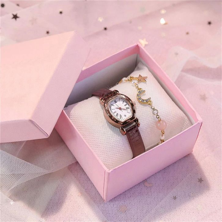 Jam Tangan Wanita Gaya Korea Set Gelang Dengan Box EL7499 En Ligne