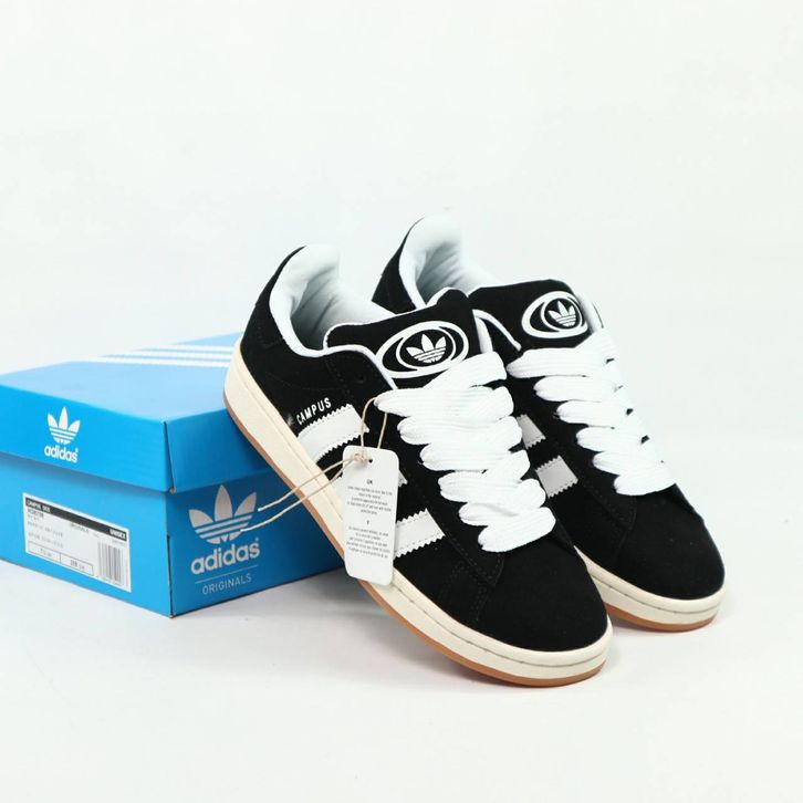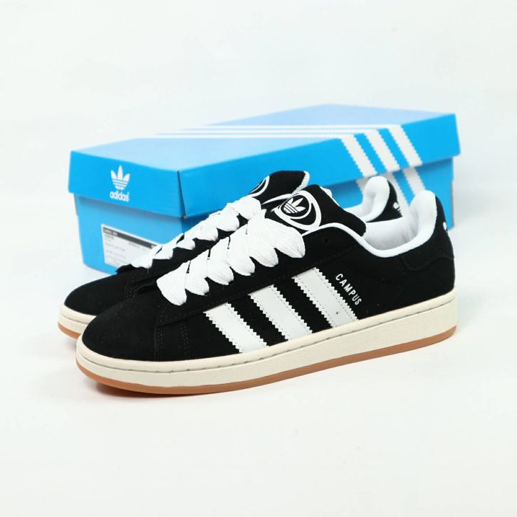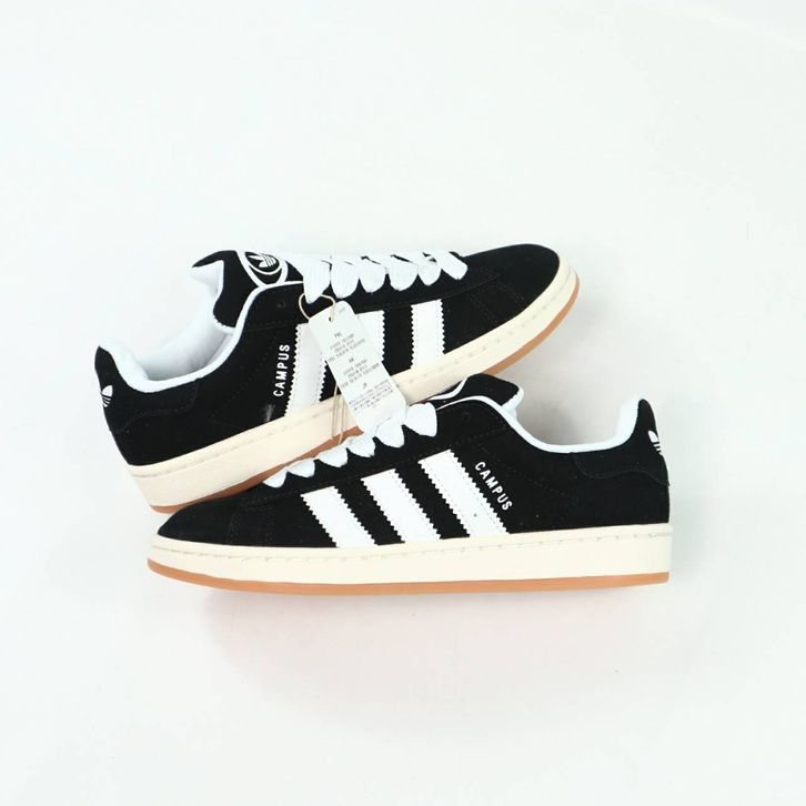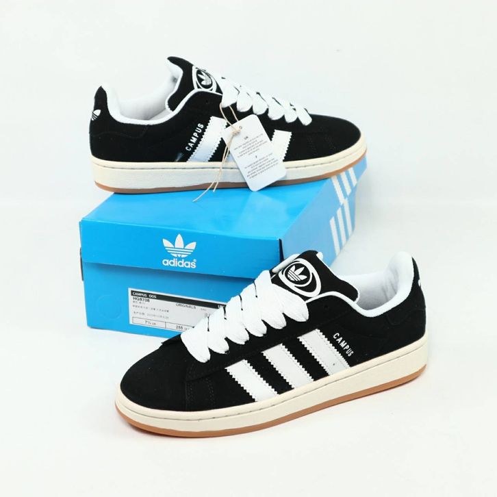 SEPATU ADIDAS CAMPUS 00s CORE BLACK WHITE HQ8708 ORIGINAL BNIB FULL TAG BARCODE BAHAN LEATHER KULIT SUEDE SIZE: 38/39/40