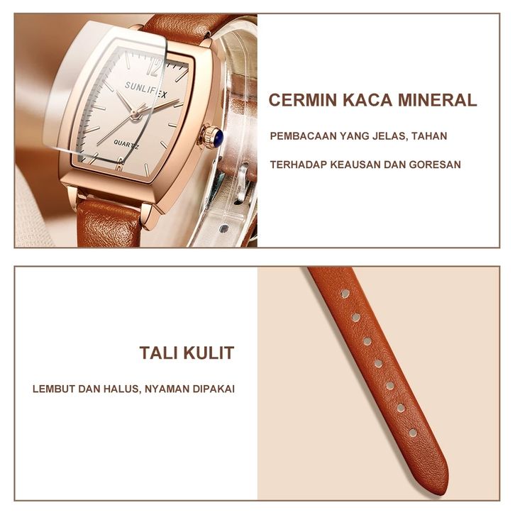 Jam Tangan Wanita Fashion Sunlifex 6007 Original Tali Kulit Anti Air