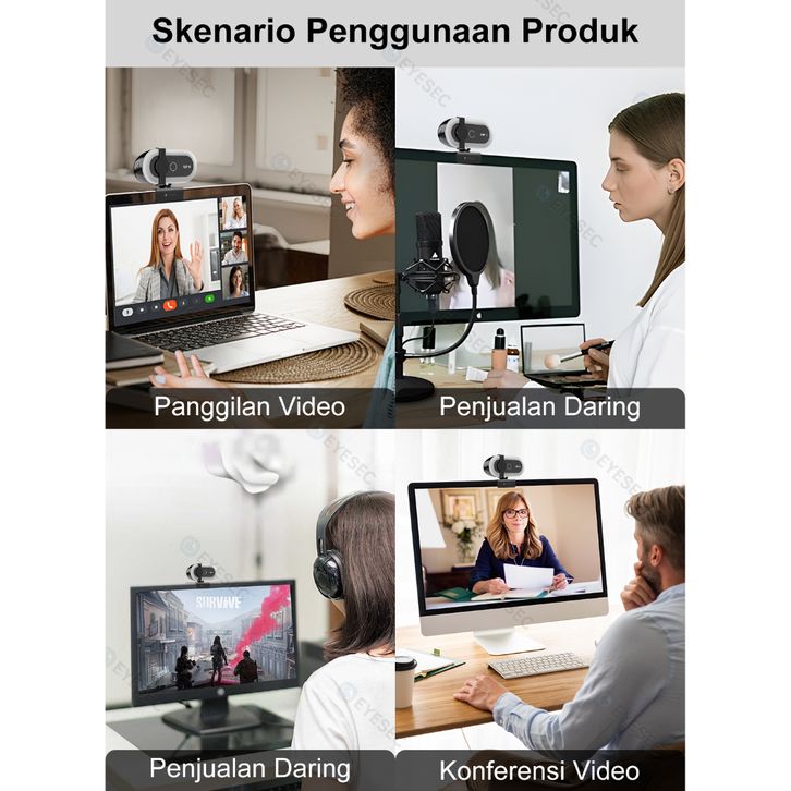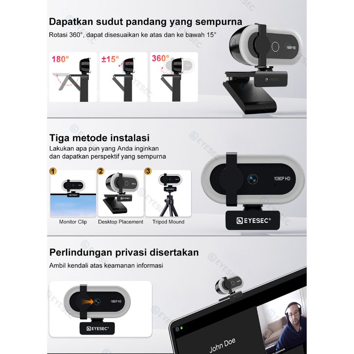 Webcam Laptop 1080P USB Kamera PC 4K Full HD With Mic Live Streming Webcam Untuk Zoom Google Meeting With Lampu