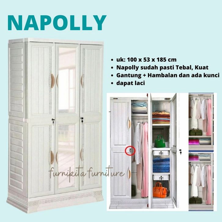 LEMARI PLASTIK NAPOLLY GANTUNG 4 SUSUN JUMBO CABINET CABSUL 1 PINTU PLUS CERMIN CABINET SULTAN