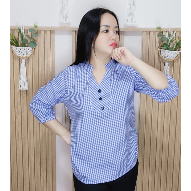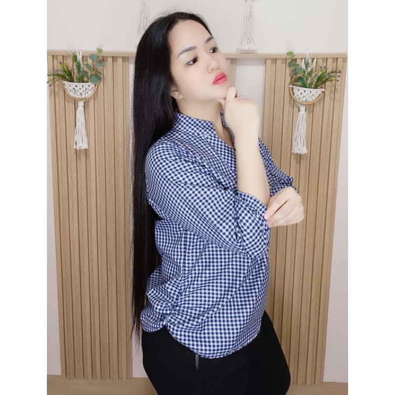 JJJ LYN - BLOUSE NAYSOO ATASAN WANITA MOTIF KOTAK ATASAN KERJA ATASAN KASUAL