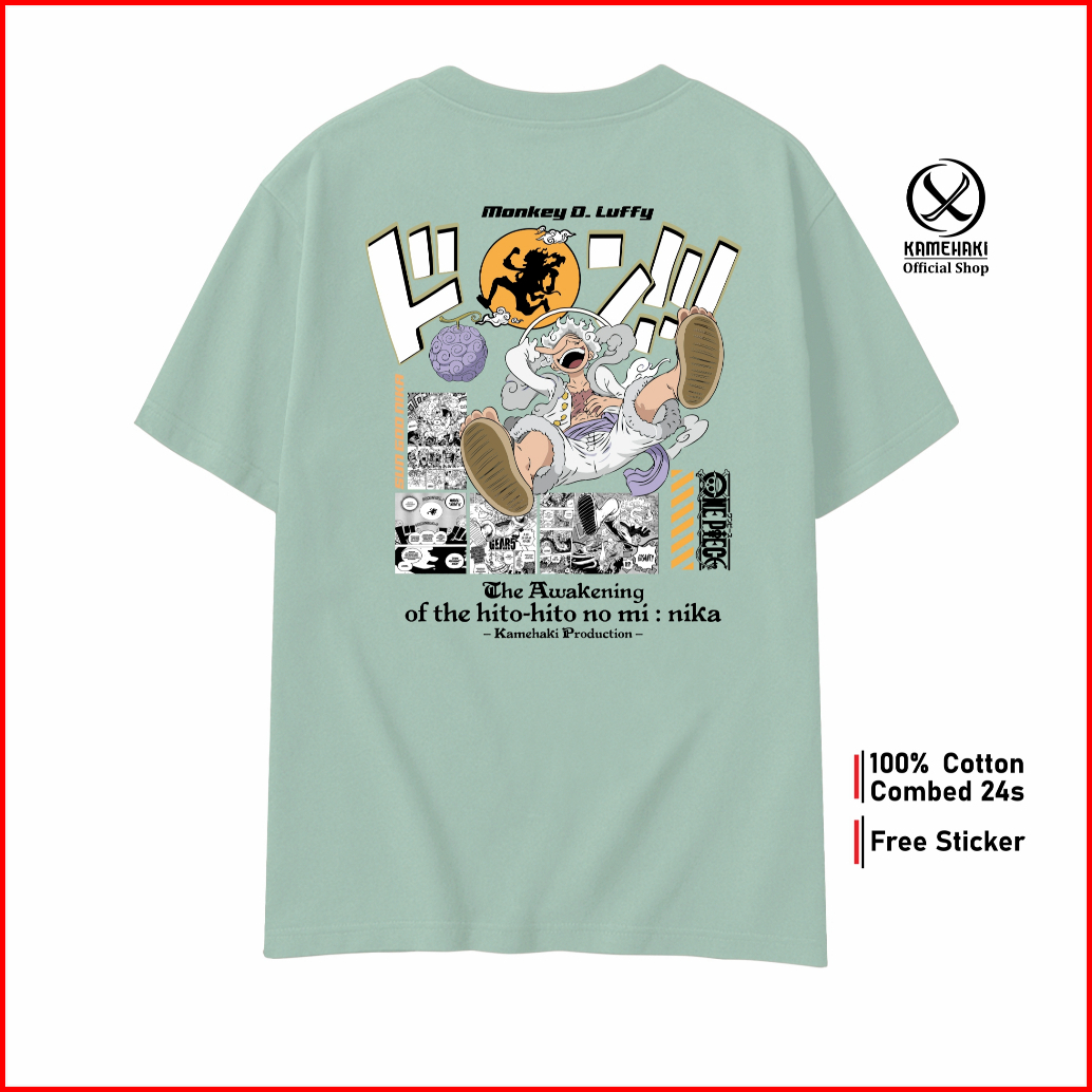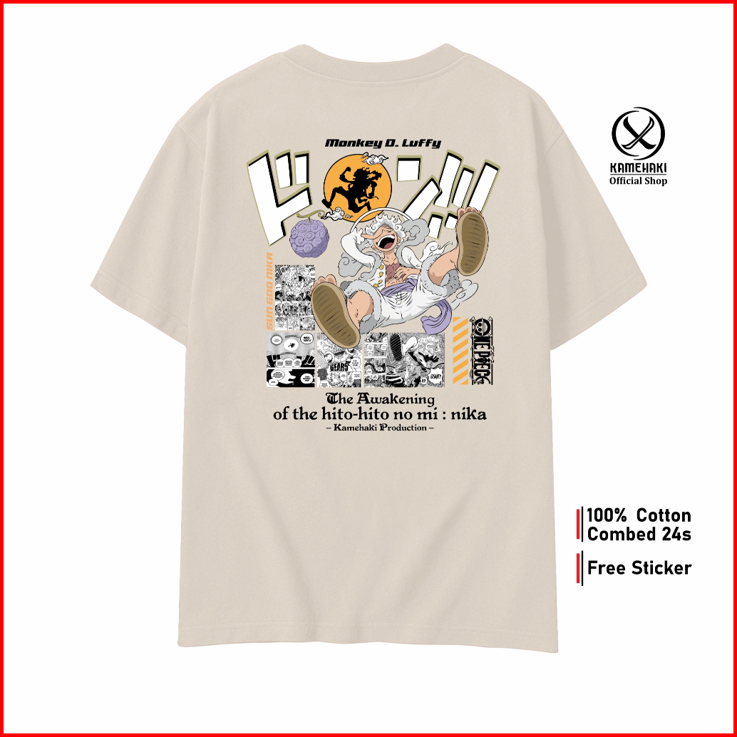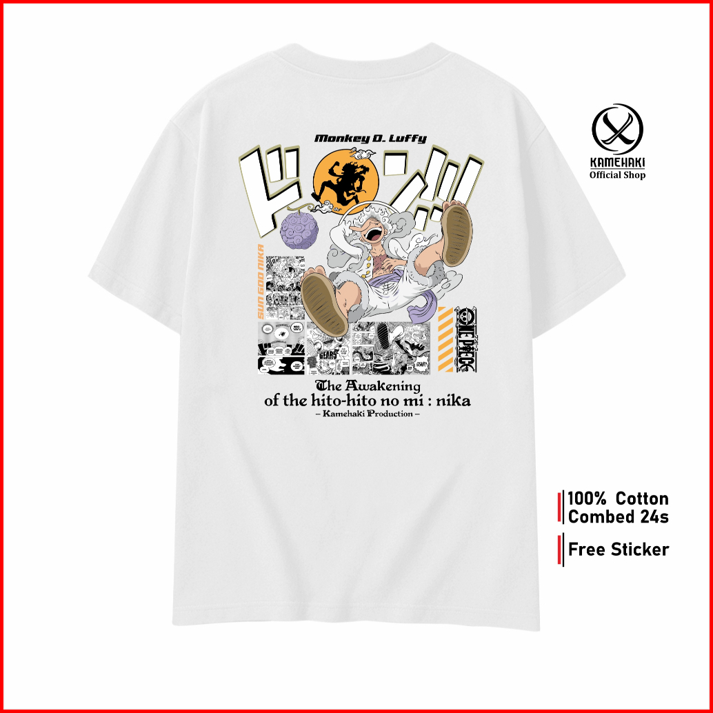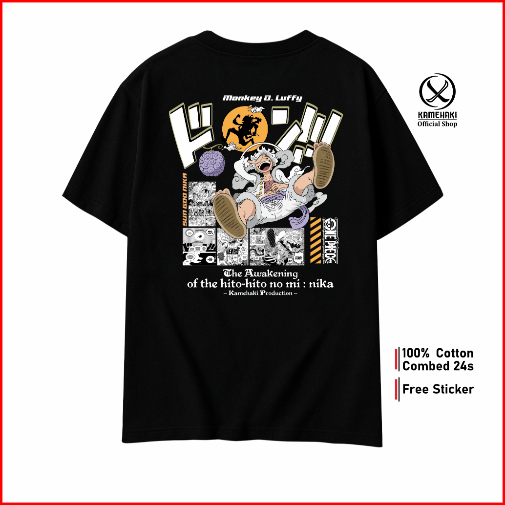Kamehaki Kaos Luffy Gear 5 Sun God Nika Kaos One Piece Kaos Anime Baju Distro Pria Wanita Kaos Oversize Baju Kaos Cospla