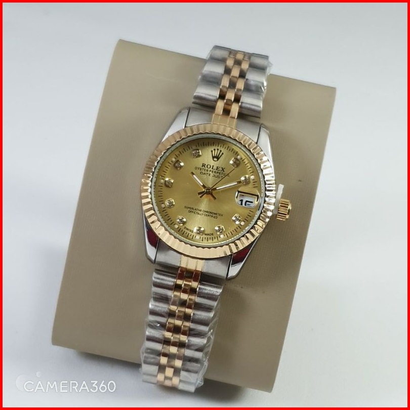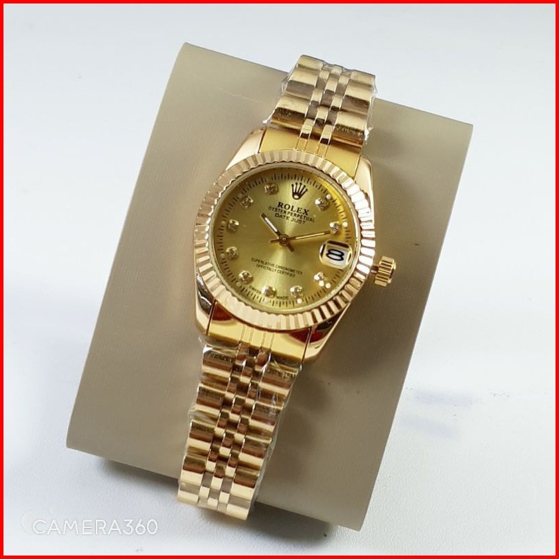 Jam Tangan Wanita Rolex Original 31052 Tali Rantai Motif Gerigi Tanggal On Free Box Rolex Baterai