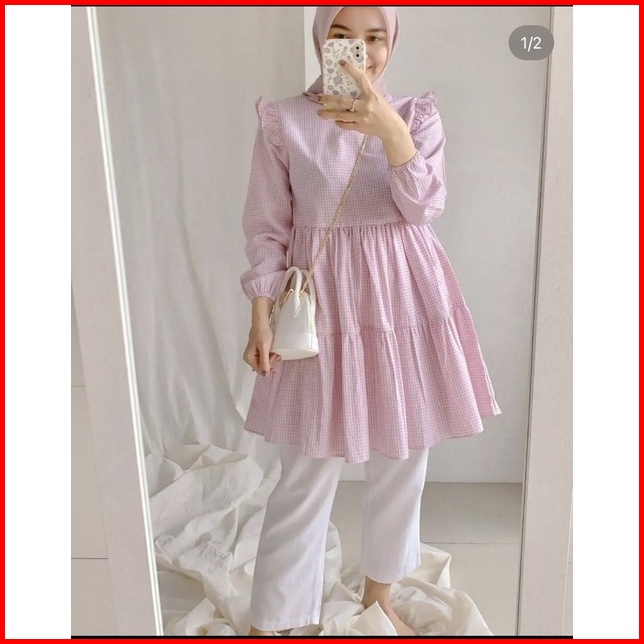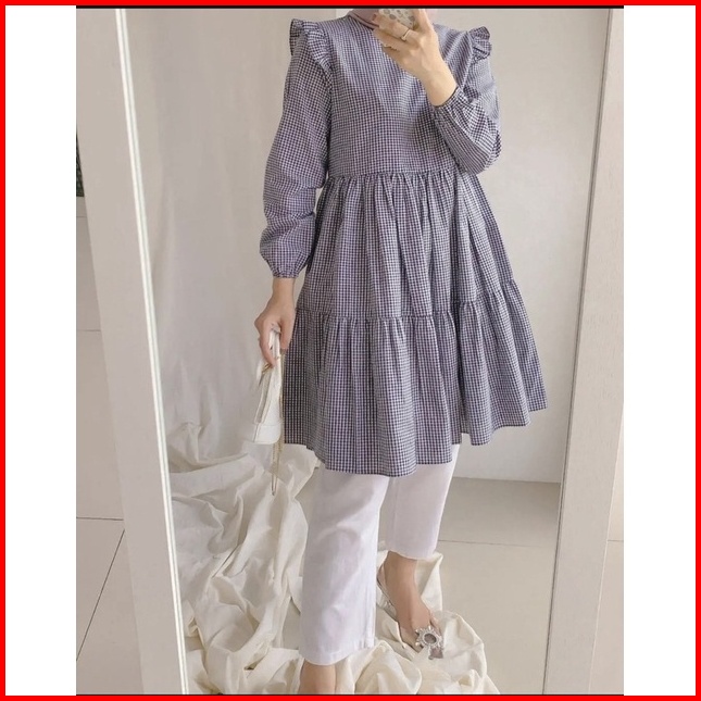 Alula Tunik - Atasan Wanita -tunik Rrmpel - Korean Style - Tunik Kotak - Pakaian Wanita -