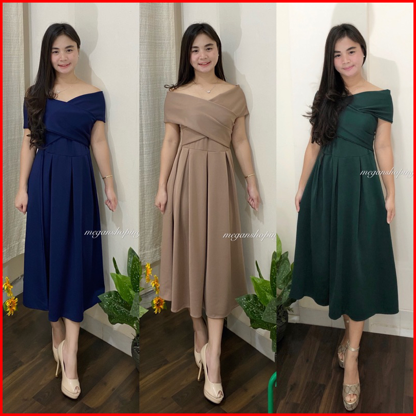 Meganshoping - Sabrina Dress Brides Maid Pesta Kondangan Pre Wedding Natal Imlek Sincia Cny Fashion Wanita Anggun Mewah