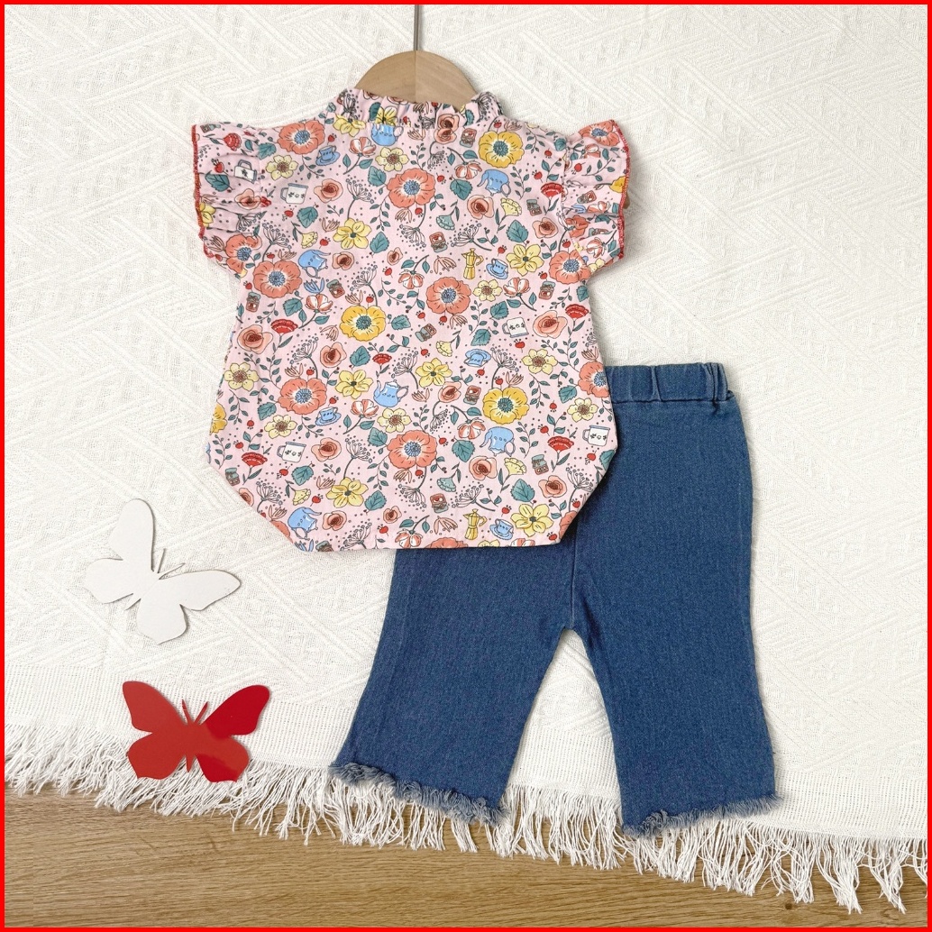 Kf Cat Setelan Anak Perempuan Set Lengan Pendek Celana Jeans Panjang Renda Kasual Style 1-4 Tahun