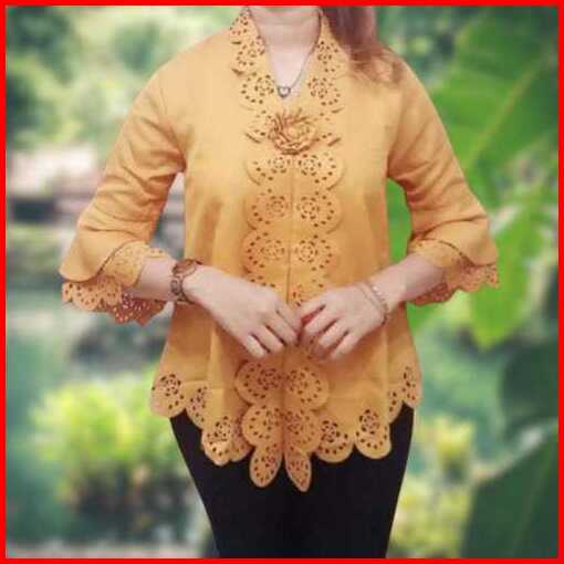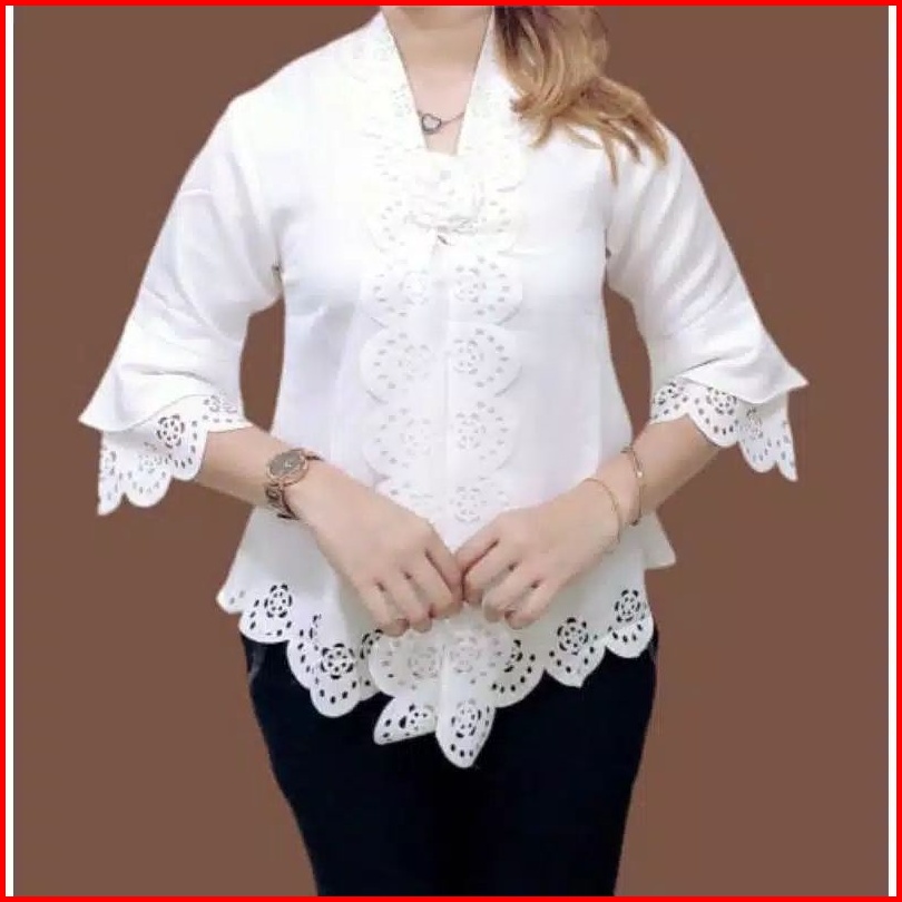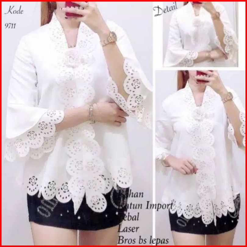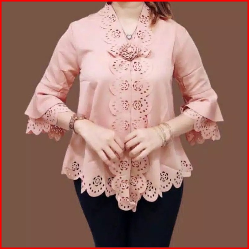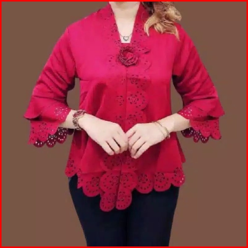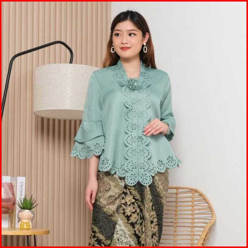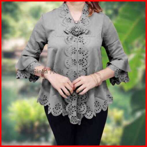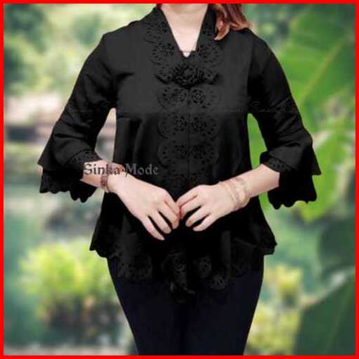 New Atasan Kebaya Encim Senada Modern Lengan Trompet 2 Susun Motif Full Laser Cut