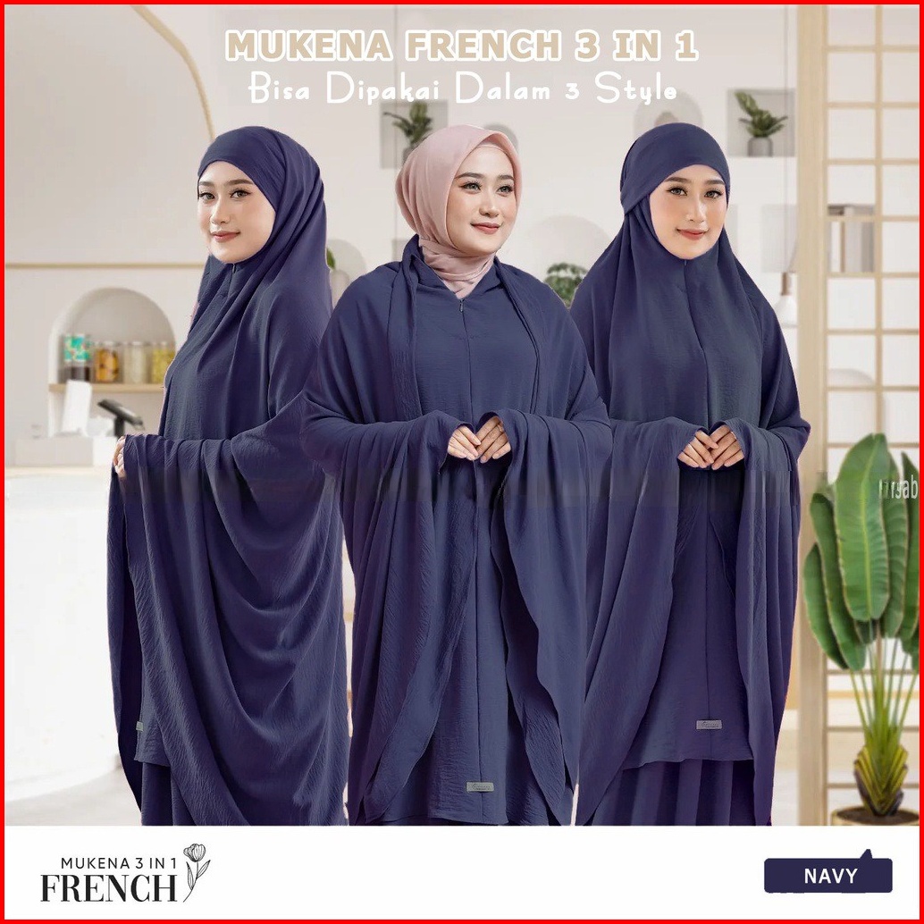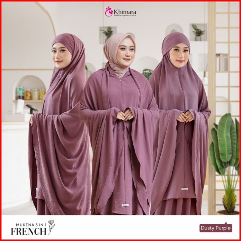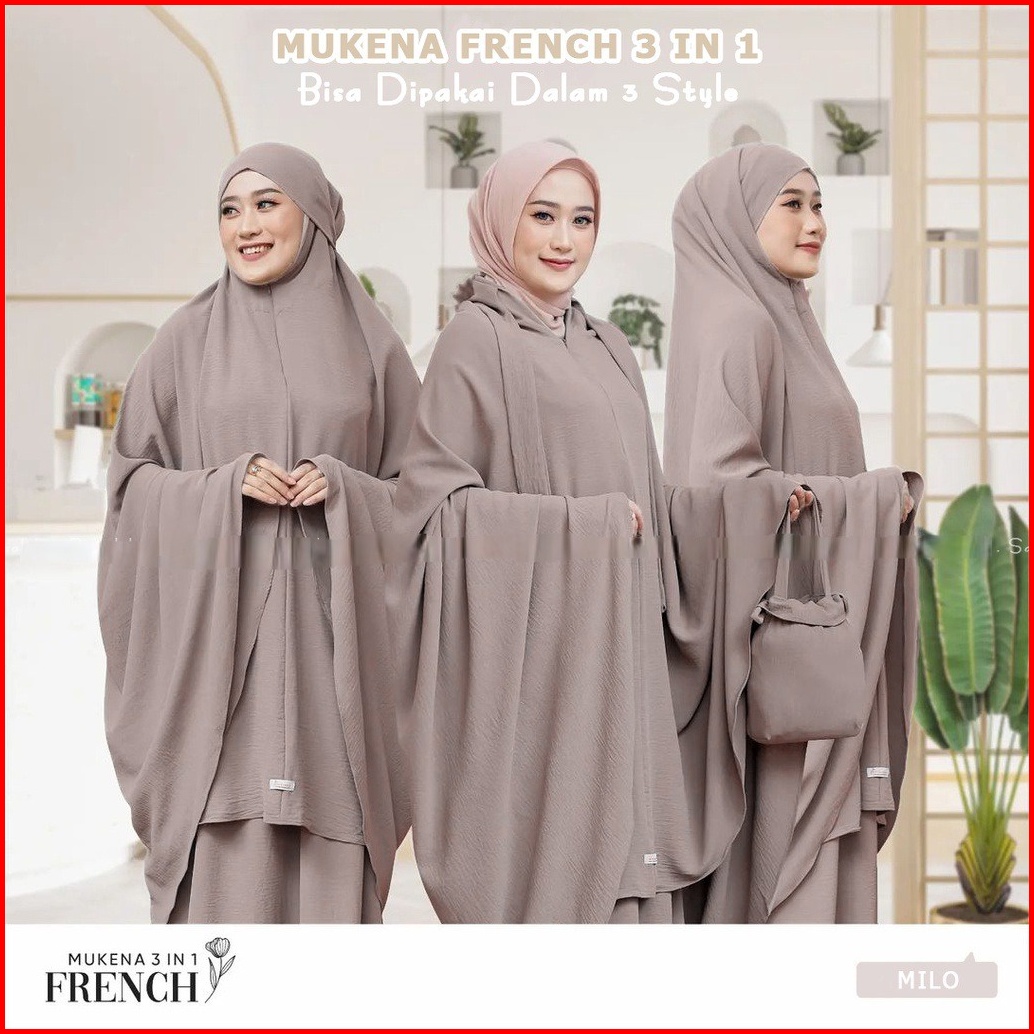 Mukena French Cantik 3 In One Mukena Terusan Motif Polos Mewah Bahan Crincle Airflow Premium Import Mukena Cantik