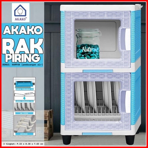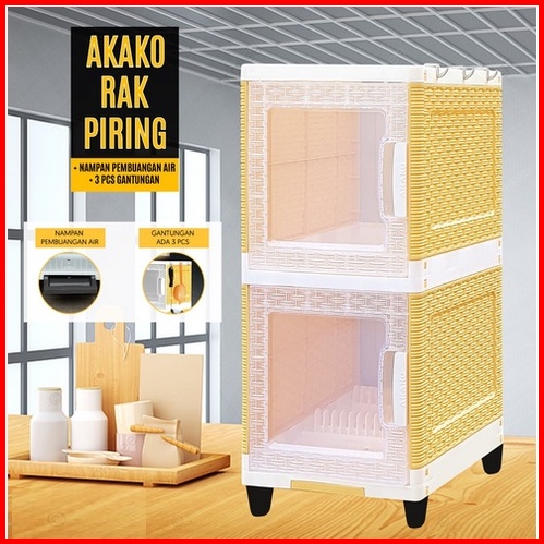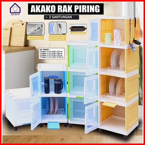 Akako Rak Piring 1 2 3 Dan 4 Susun Plastik Pintu Transparan Mini Dish Rack Lemari Dapur