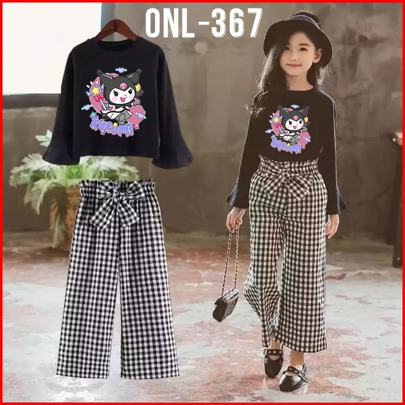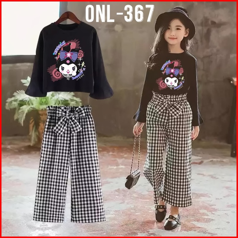 Emc Collection Setelan Harian Anak Perempuan Setelan Celana Panjang Anak Cewek Play Set Kotak-kotak