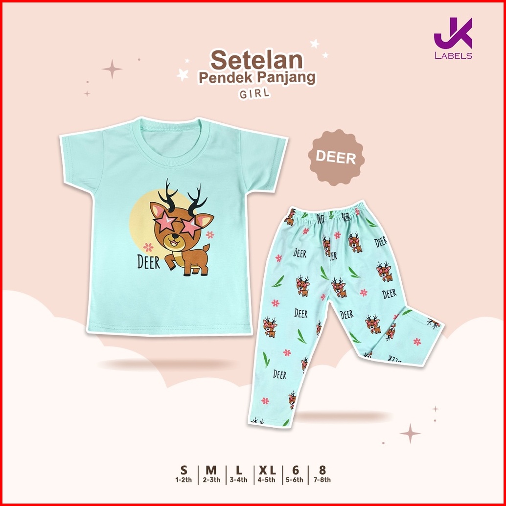 Jk Labels - Setelan Pendek Panjang Girl - Deer 1-8 Tahun