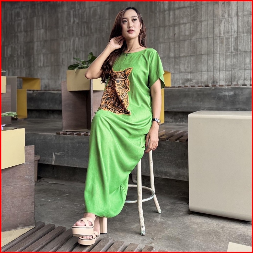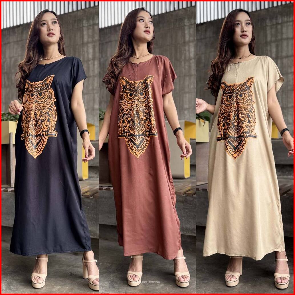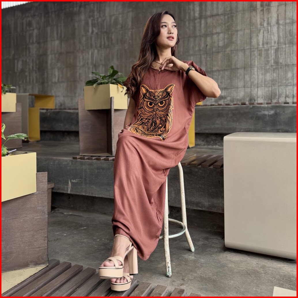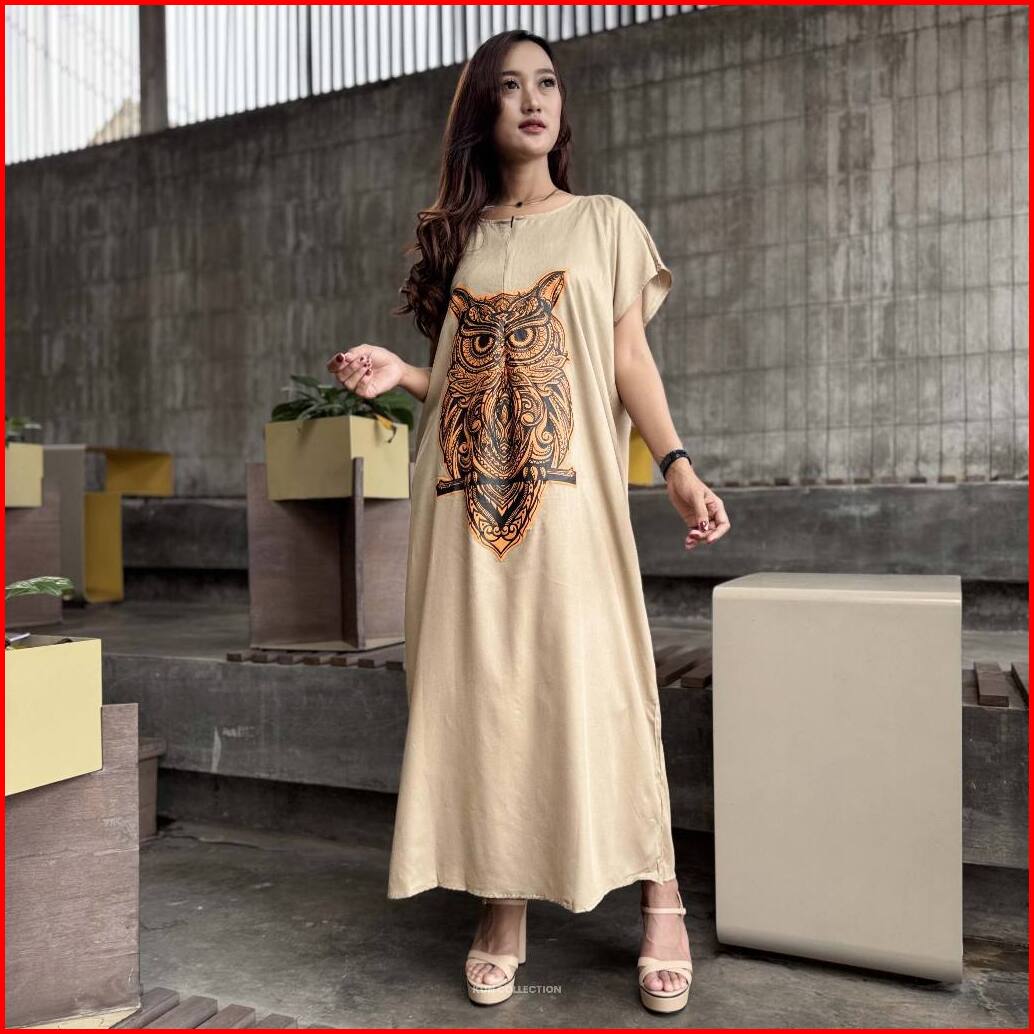 Long Dress Karakter Motif Owl Panda Kucing Ld120 Bahan Rayon Halus - Kun Collection