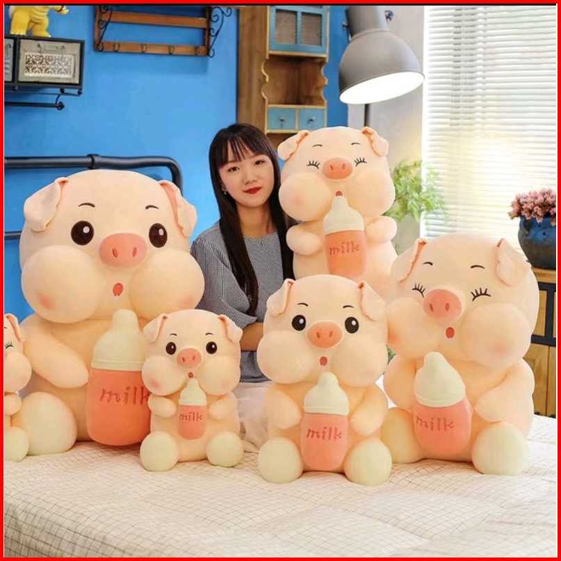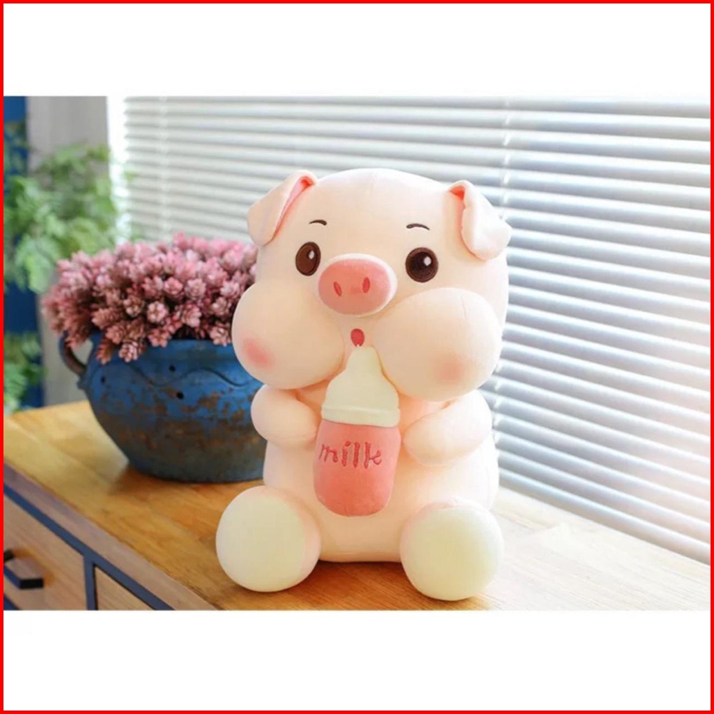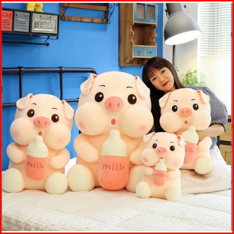Boneka Babi Jumbo 45 Cm Piggy Milk Bottle Pig Pegang Botol Susu Pink Gemoy Halus Lembut Lucu