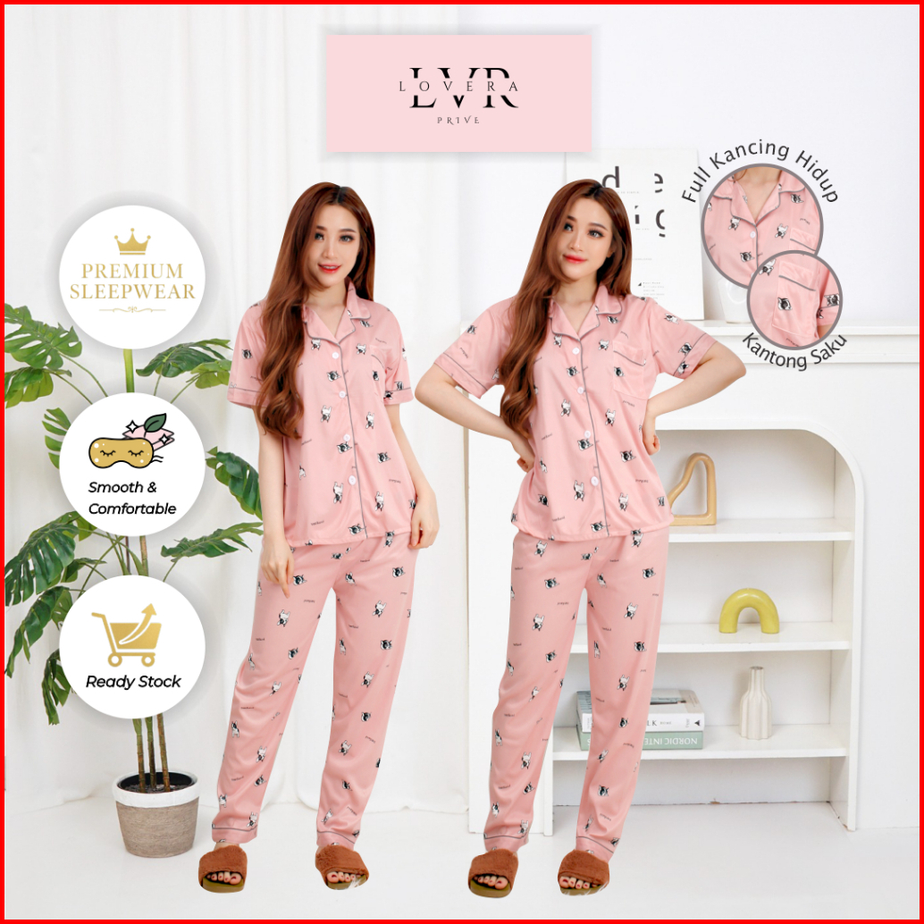 Lovera Baju Tidur Piyama Set Kemeja Cp Lengan Pendek Celana Panjang Premium Banyak Motif