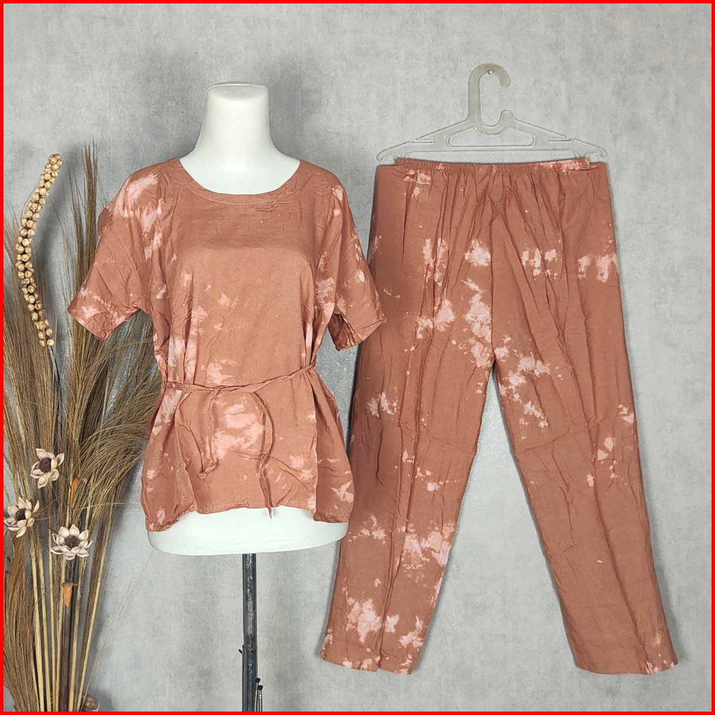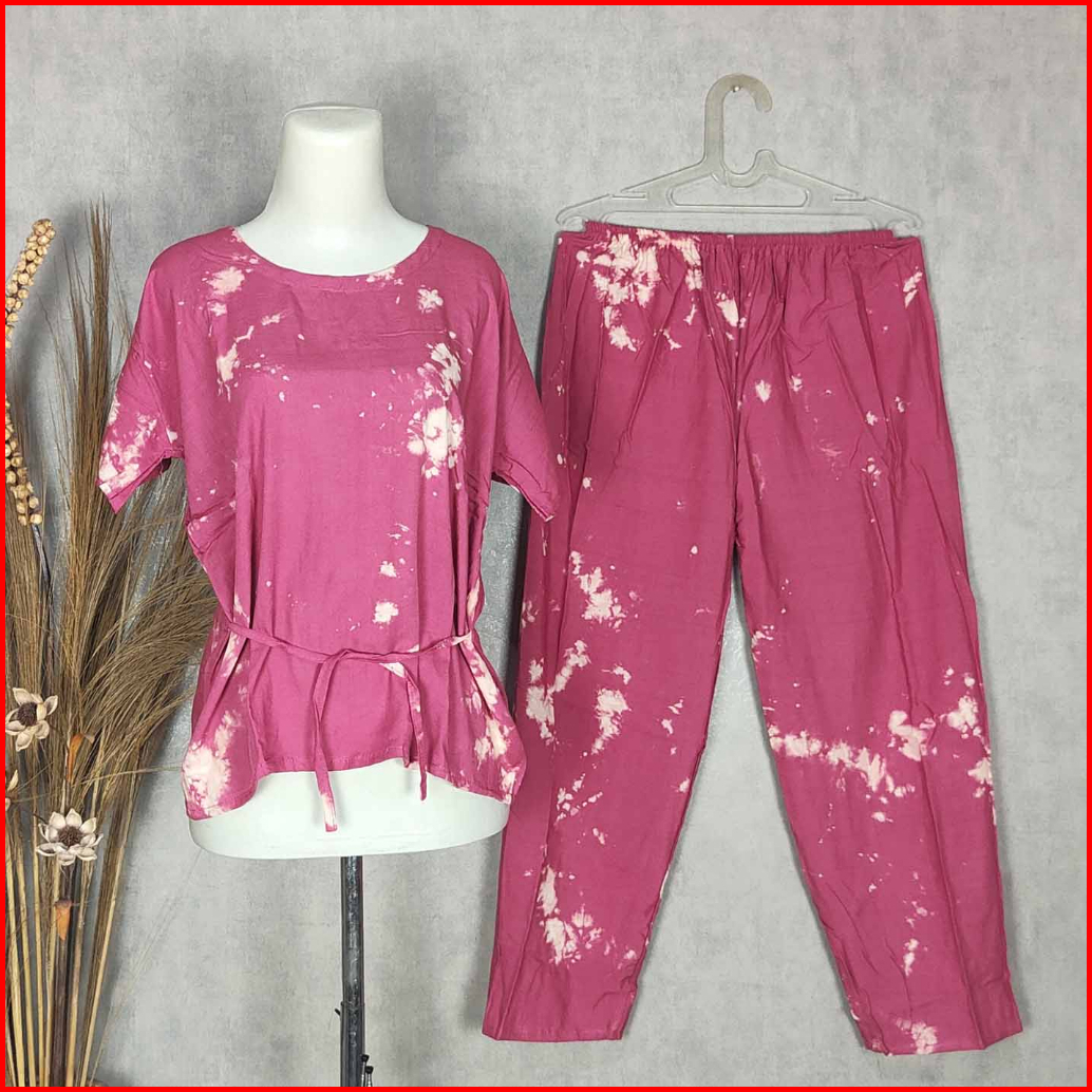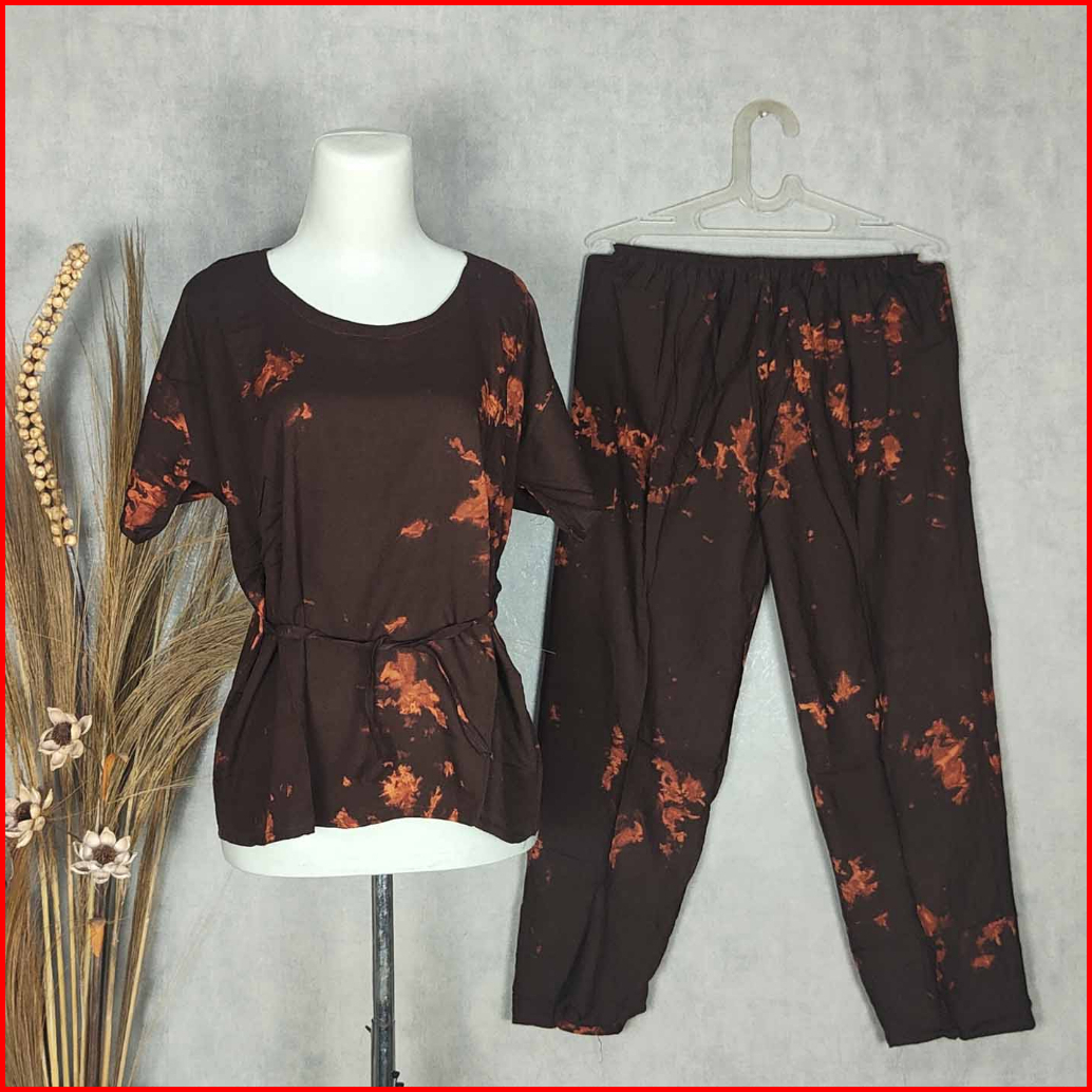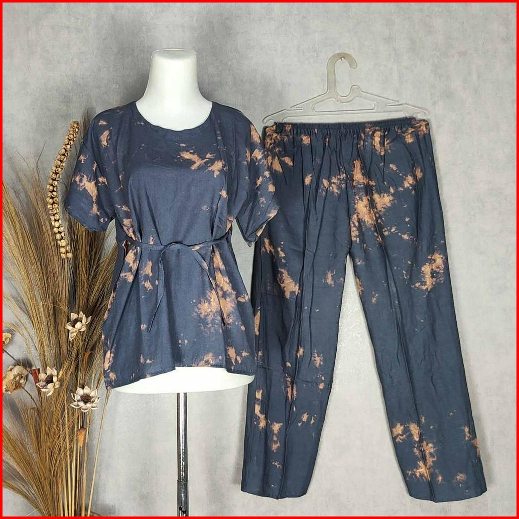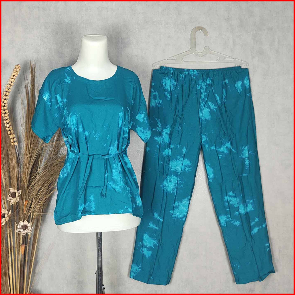 Setelan Panjang Tie Dye Bali Babydoll Baju Tidur Piyama Pilih Motif