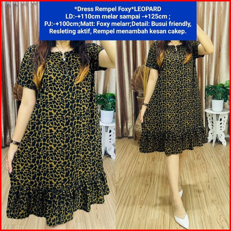Daster Dress Rempel Leopard Foxy Melar Resleting Busui Cantik Dress Foxy Ruffle Dress Foxy Susun Dress Foxy Canda Dress