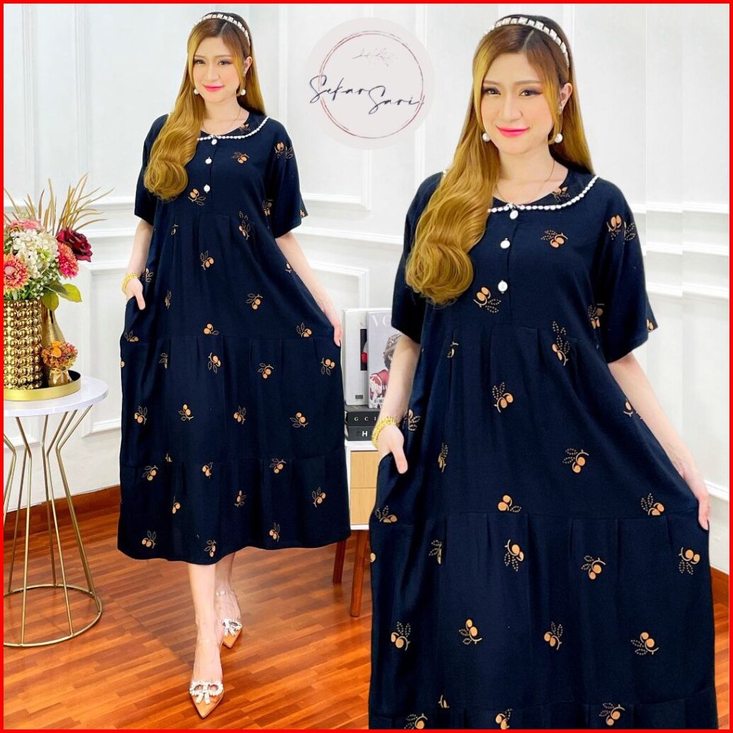 Daster Arab Zeema Rayon Super Grade A Resleting Depan Busui Renda Milo Ori